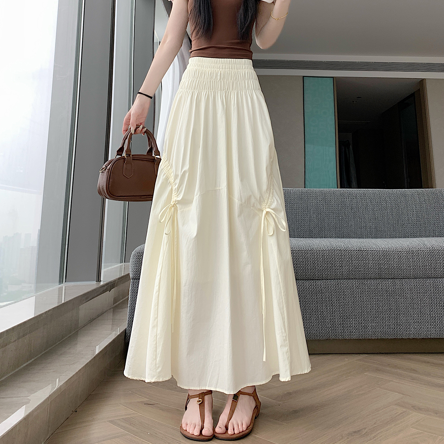 BY19006# 夏韩系腰部收腰设计遮胯显瘦系带抽绳a字半身裙长裙伞裙 服裝批發女裝批發服飾貨源