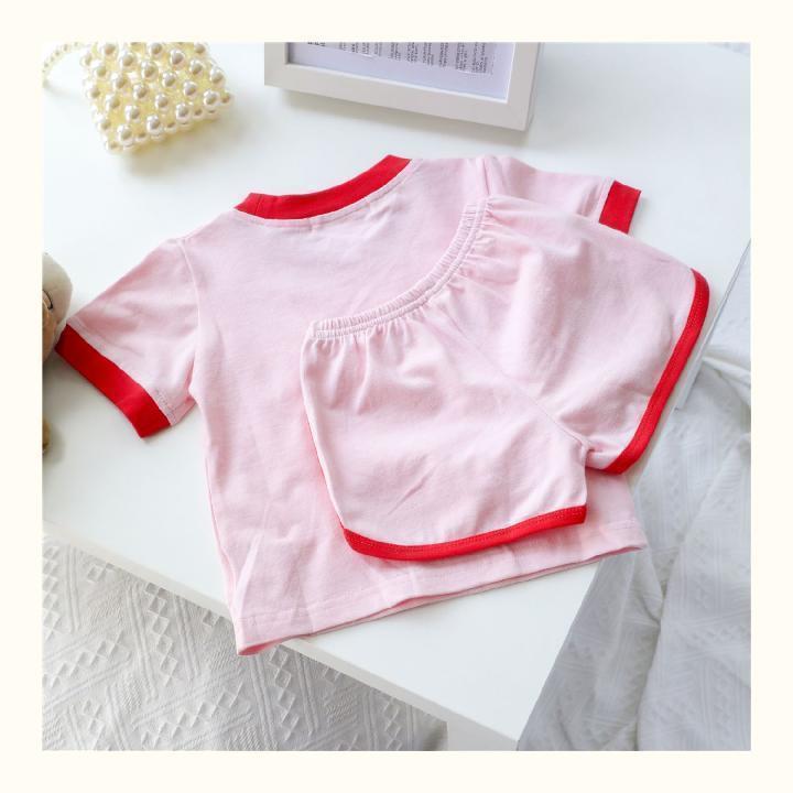 LN14401# 夏季女童运动套装宝宝网红洋气儿童个性潮韩版拼色爱心可爱两件套