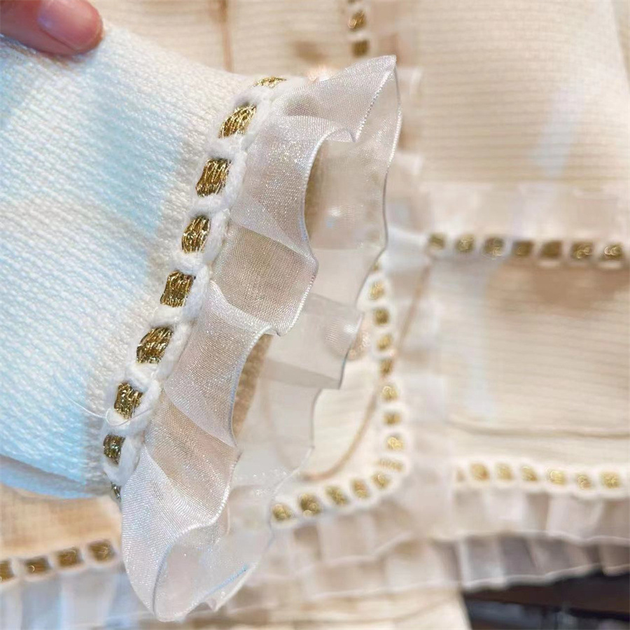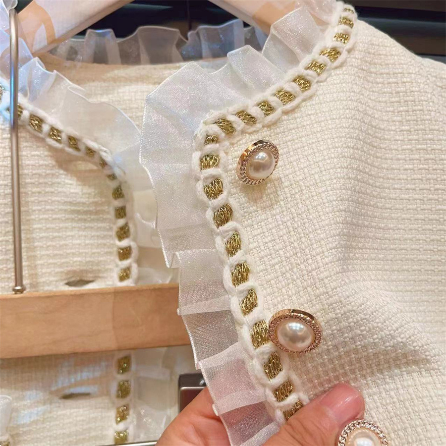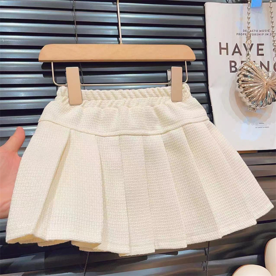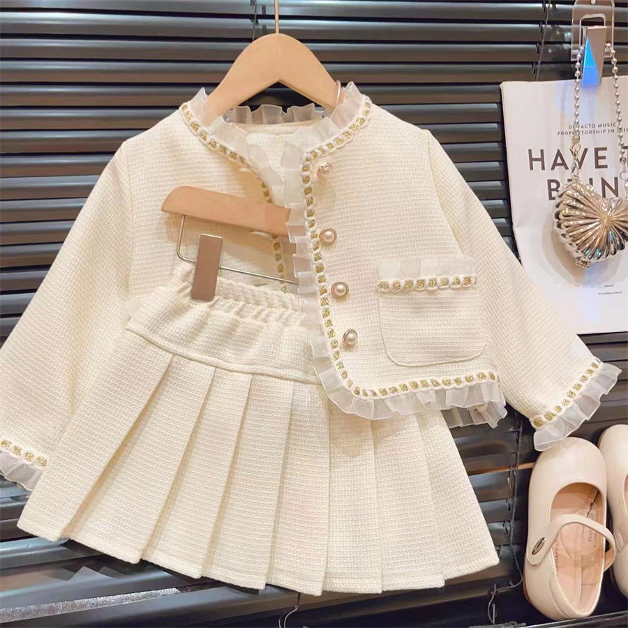 LN14466# 新品春秋款套装女童小香风套装网纱拼接外套百褶裙时尚两件套