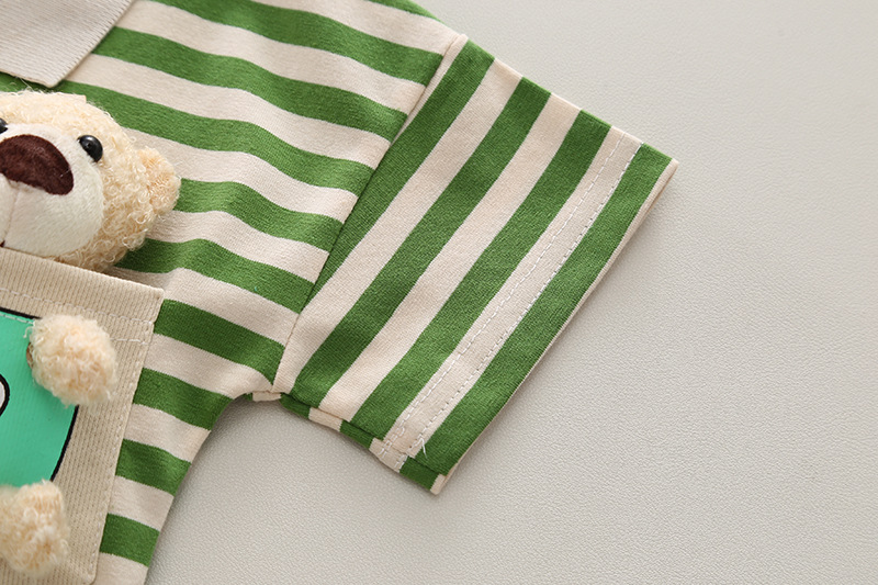 短袖口袋熊套装绿色