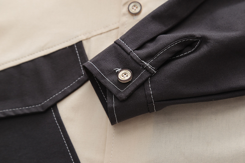 长袖拼色衬衫套装棕色