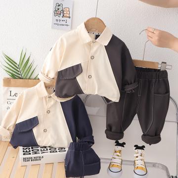 长袖拼色衬衫套装藏蓝色