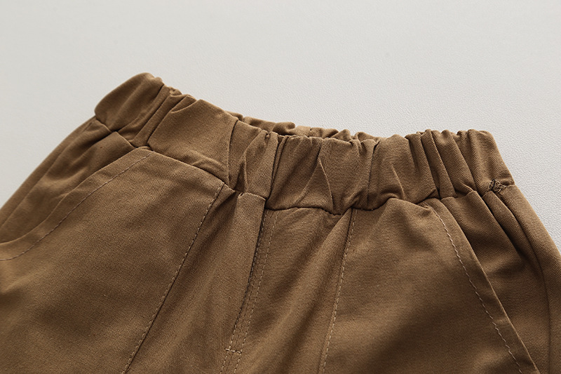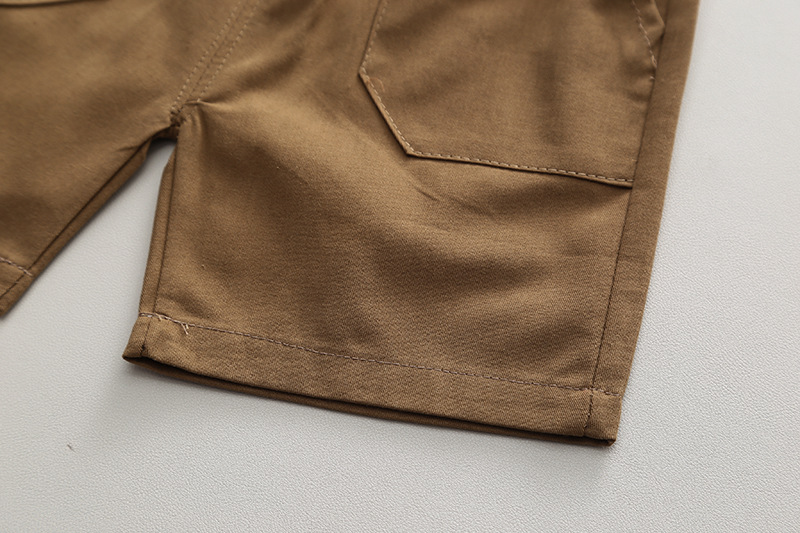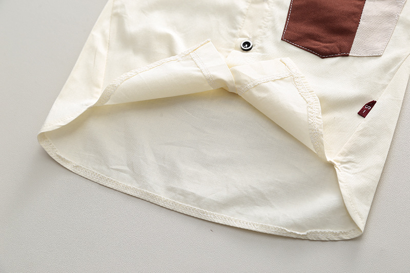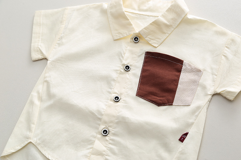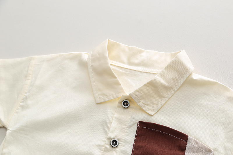 短袖斜口袋衬衫套装米色