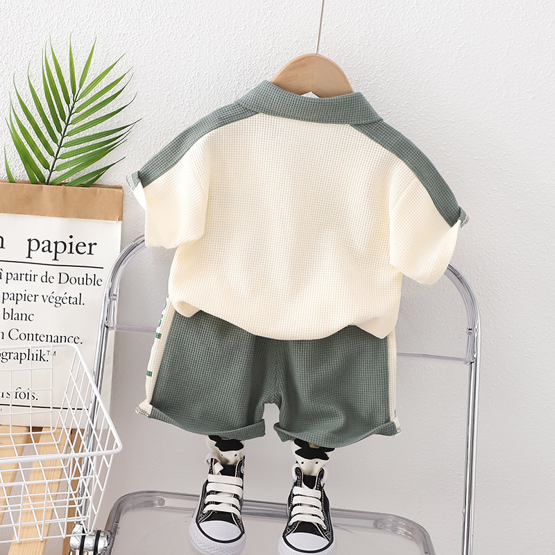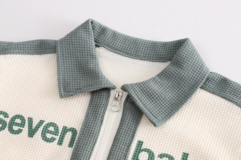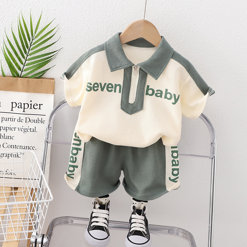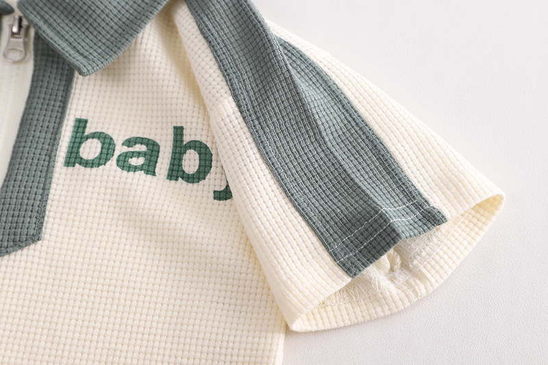 短袖翻领英文套装绿色