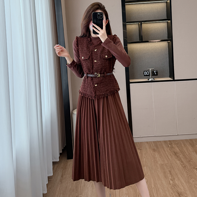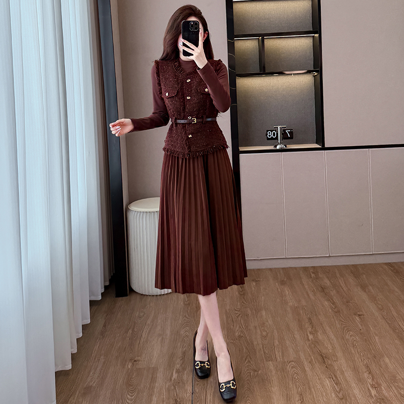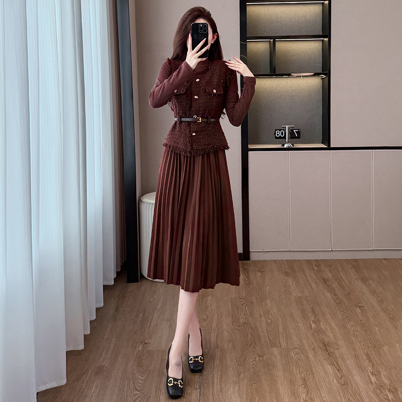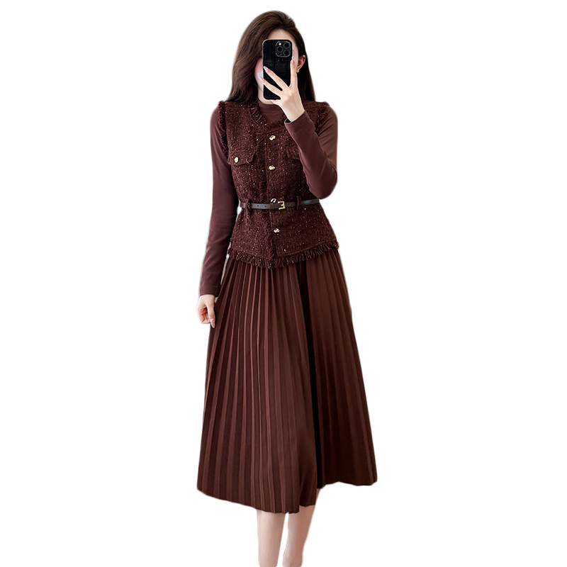 FA52067# 马甲连衣裙套装裙女秋冬新款巨好看高端轻奢小香风名媛一整套 服裝批發女裝批發服飾貨源