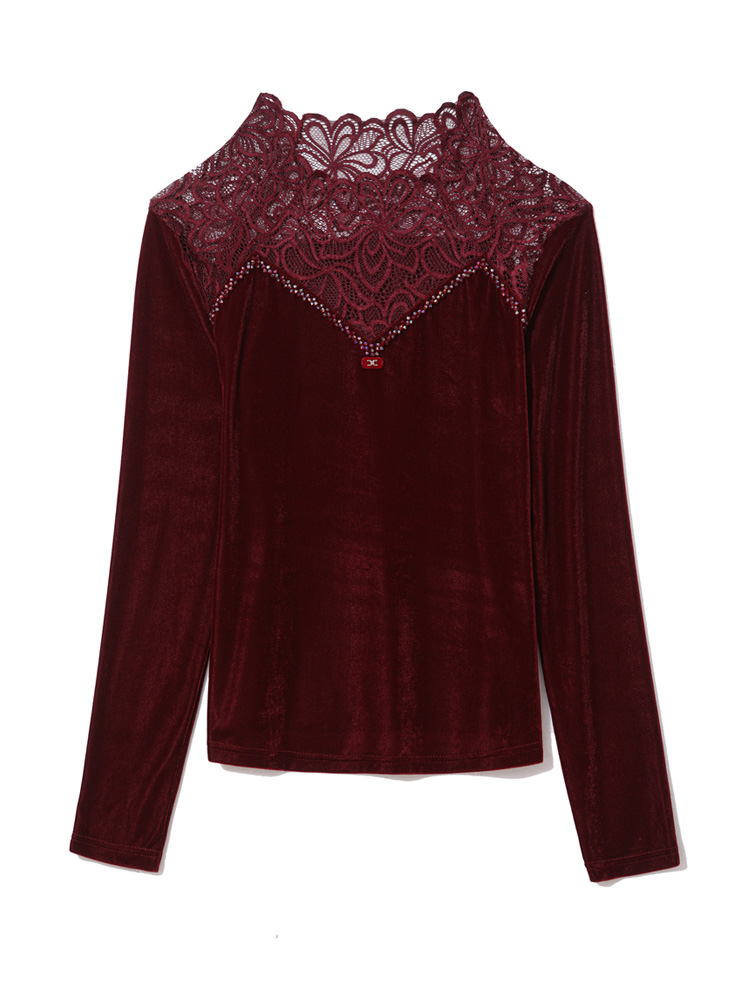 新款洋气百搭蕾丝拼接丝绒钉珠长袖打底衫女 服裝批發女裝批發服飾貨源