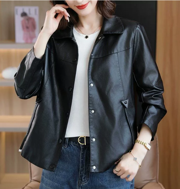 LN76408# 韩版皮衣外套女士秋季新款短款小个子减龄洋气百搭时尚春秋皮夹克