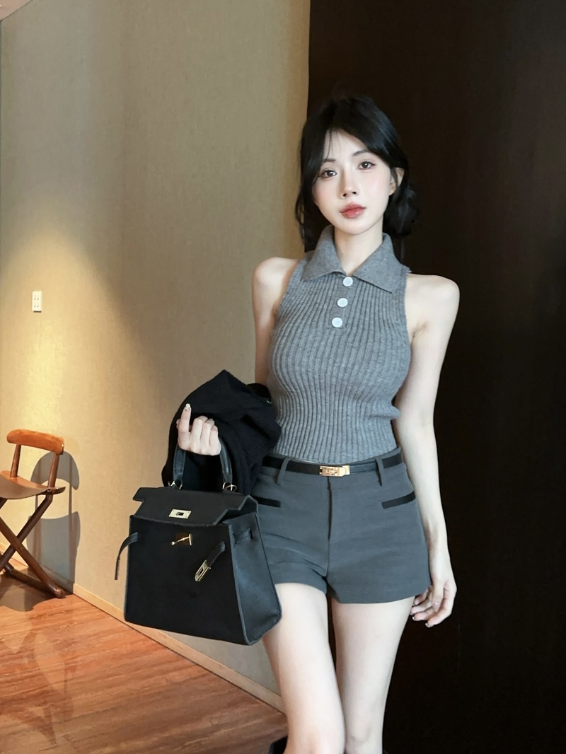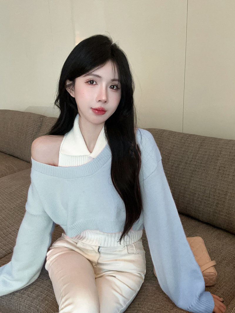 FA53663# 减龄毛衣两件套Polo领背心圆领针织罩衫上衣套装女
