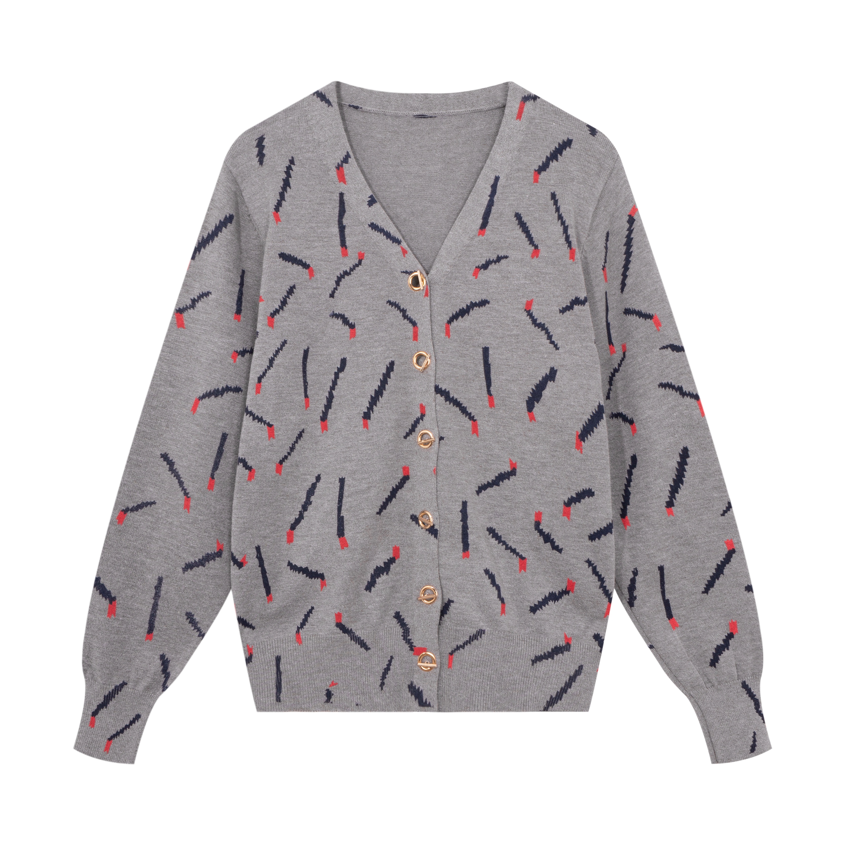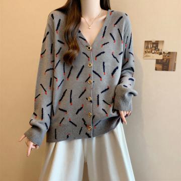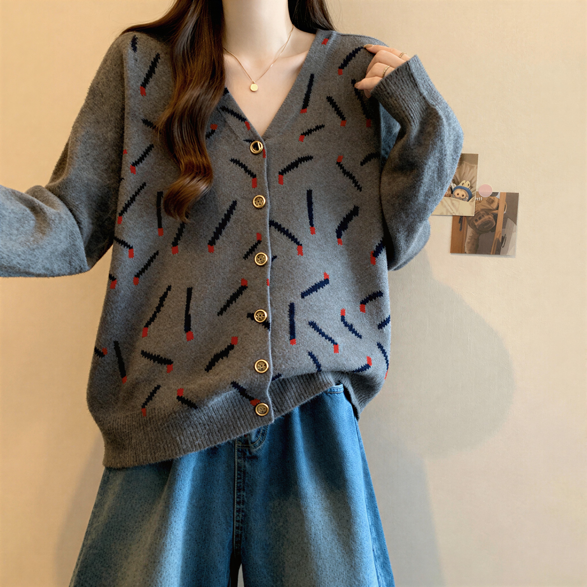 FA53690# 灰色V领长袖针织开衫外套秋季大码胖MM时尚洋气宽松显瘦漂亮上衣