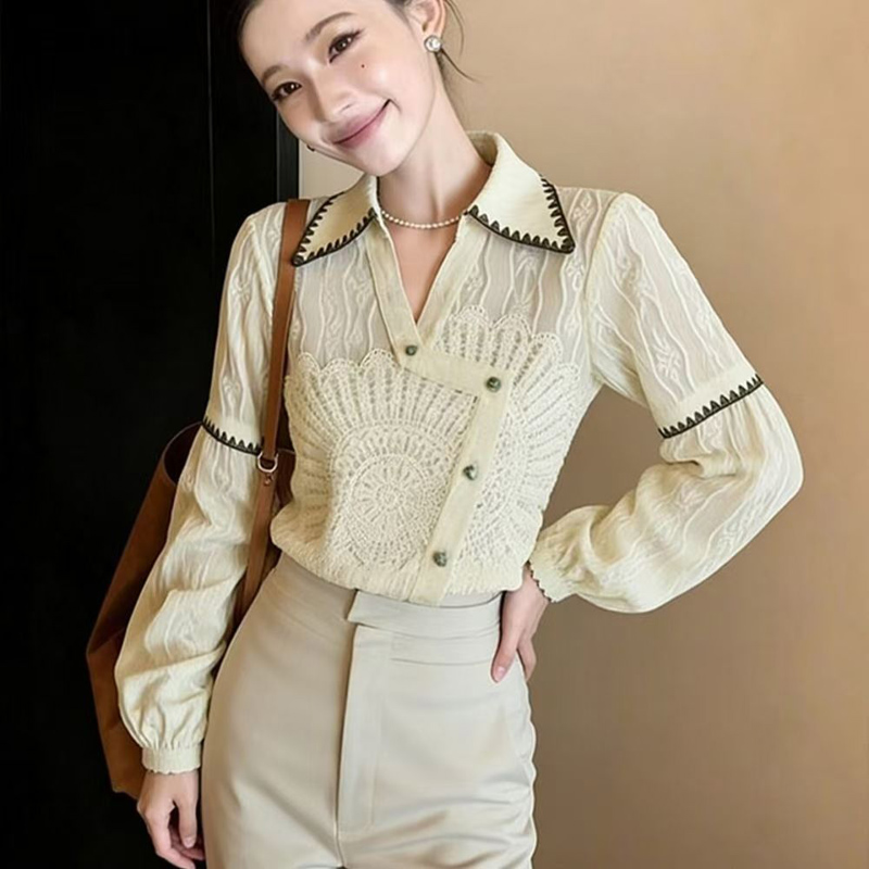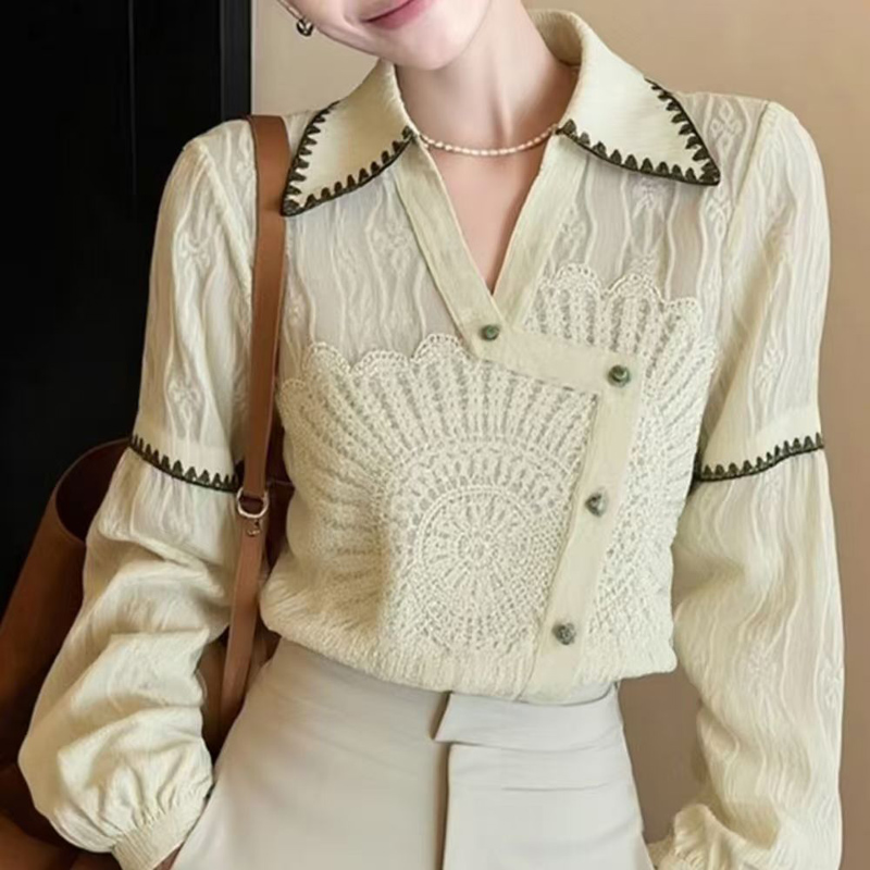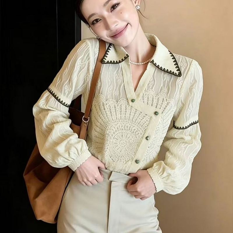 首页 > 长袖雪纺衫、衬衫、上衣 > YF7012# 图片色春秋别致设计提花翻领长袖宽松显瘦韩版新款复古气质上衣