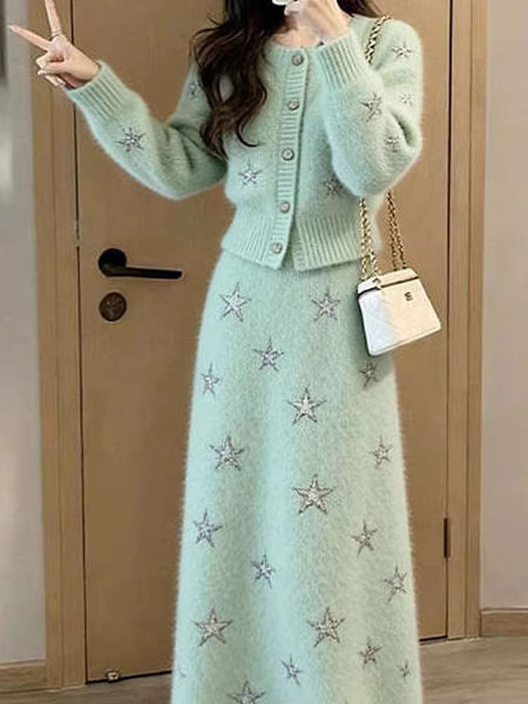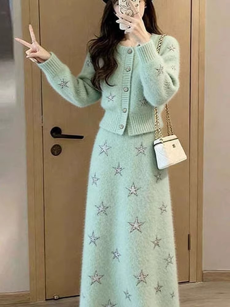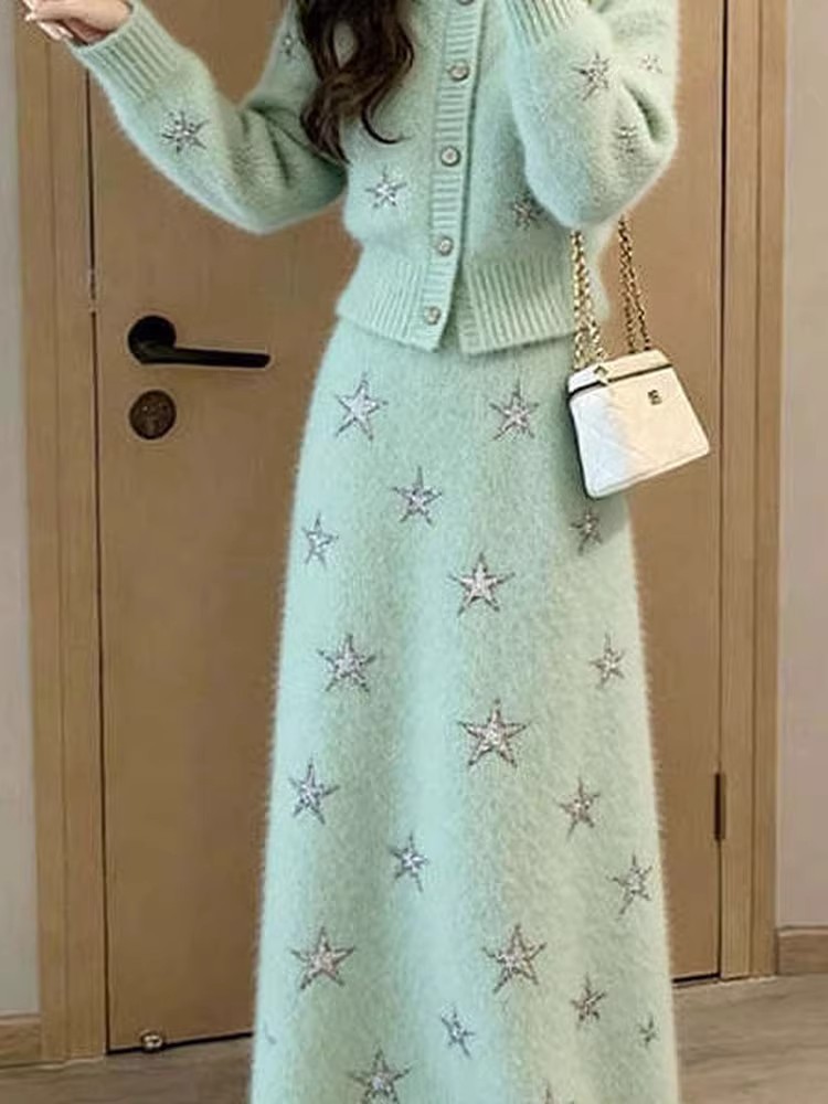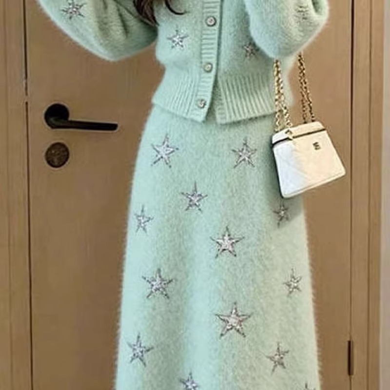 绿色毛衣+绿色半身裙