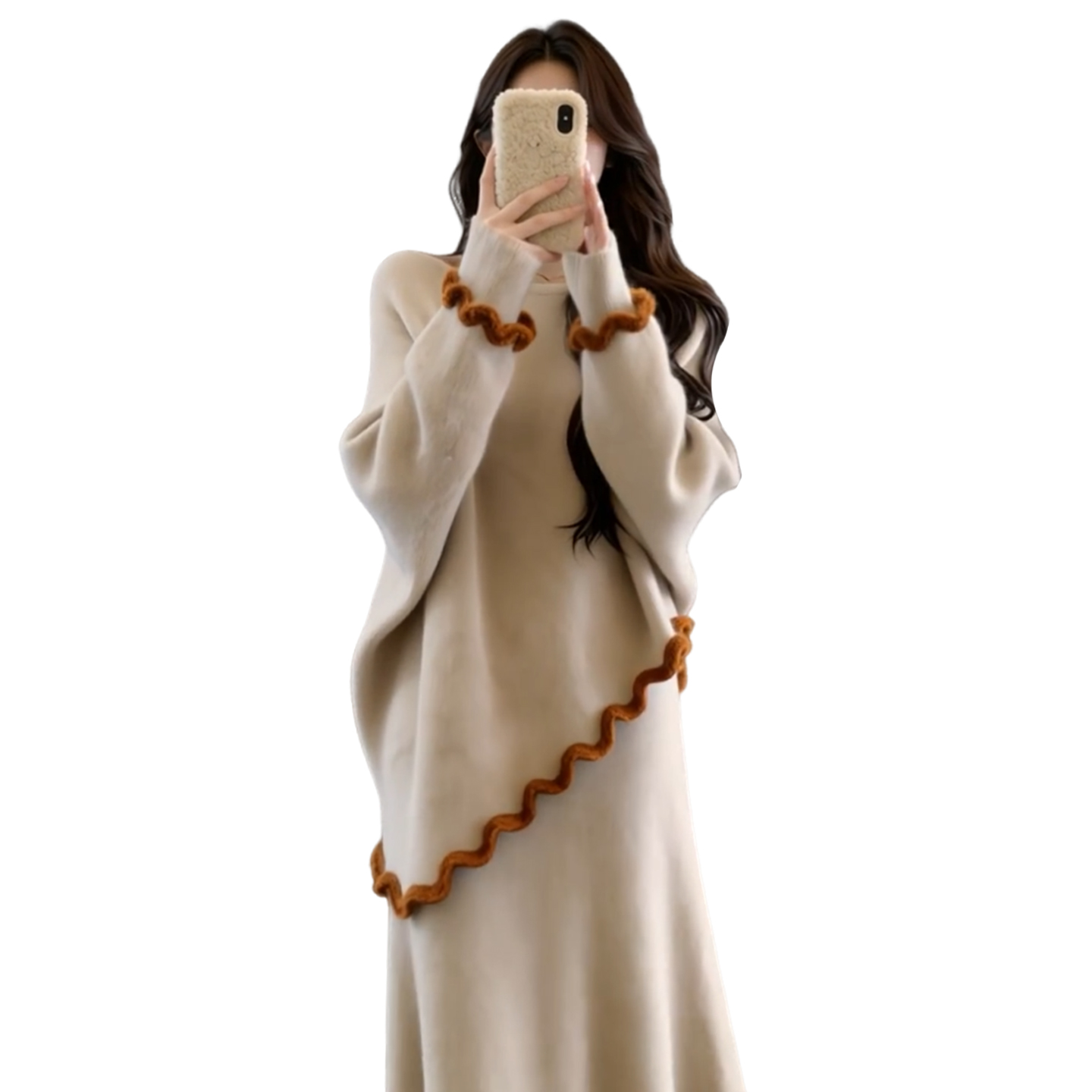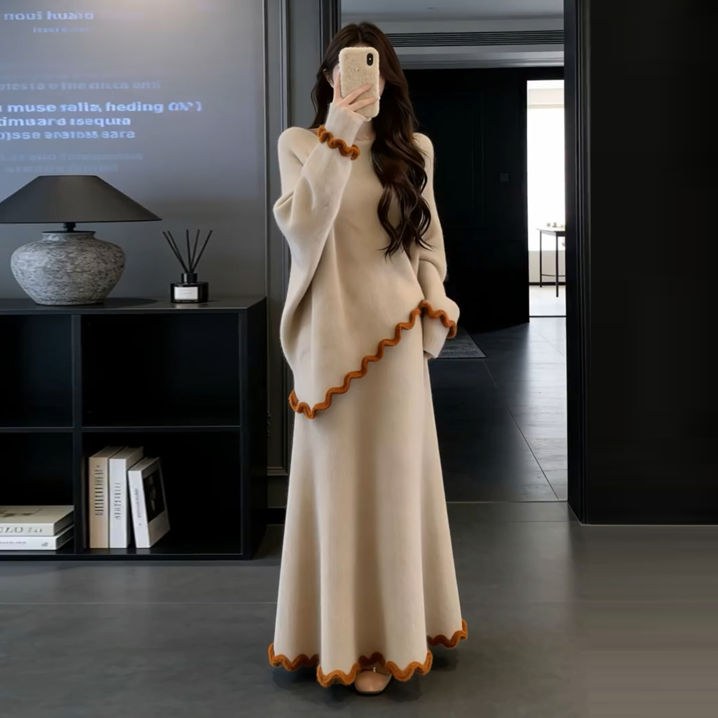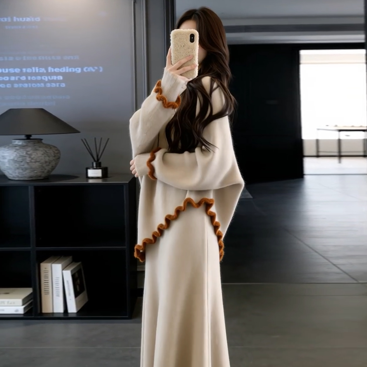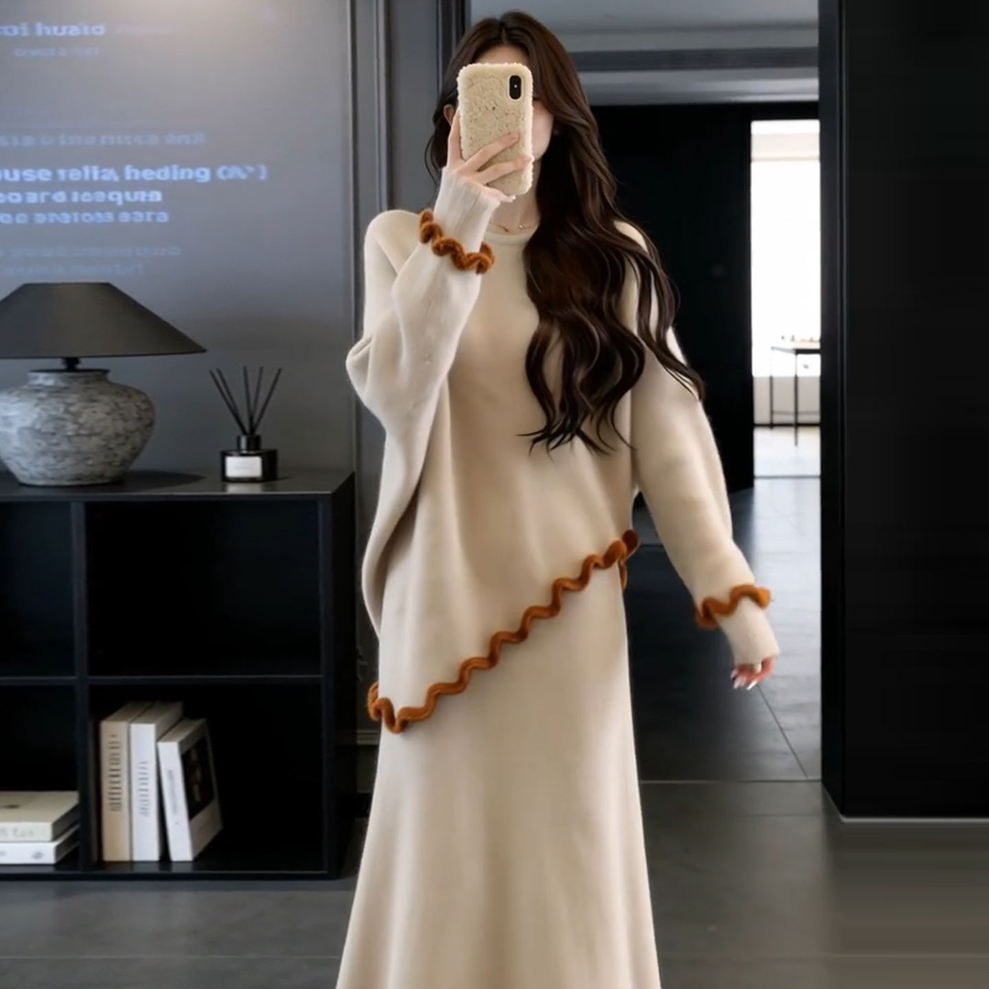 FA56796# 法式温柔风不规则针织连衣裙子女新款早春季超火穿搭长裙套装 服裝批發女裝批發服飾貨源