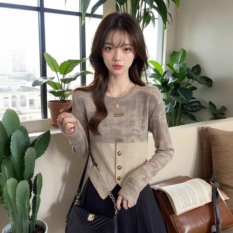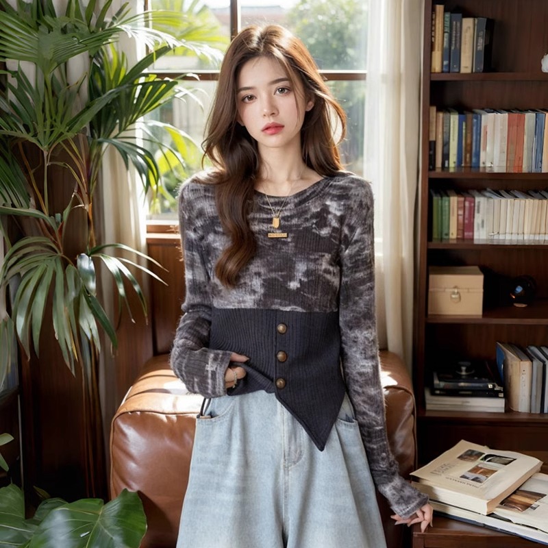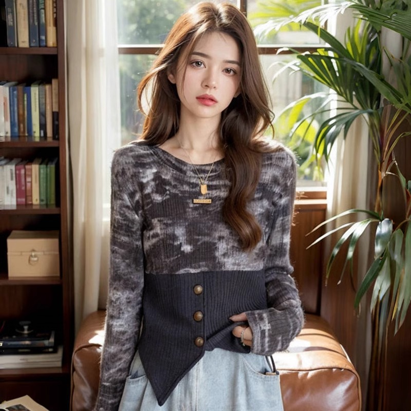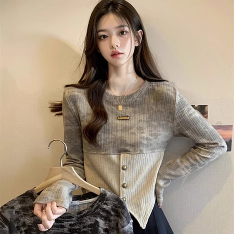 FA56798# 春装不规则晕染拼接上衣女修身显瘦上衣打底 服裝批發女裝批發服飾貨源