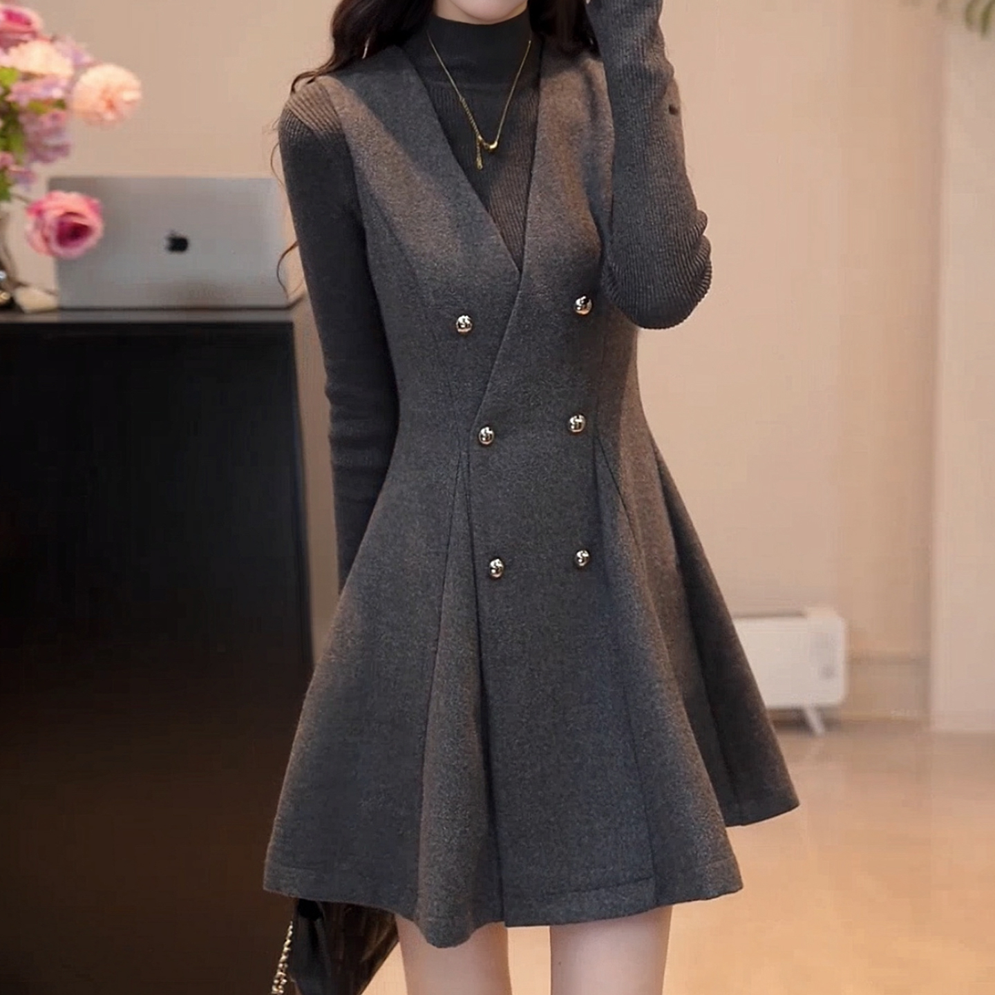 FA56819# 新款针织毛衣背带连衣裙子女秋冬季韩系穿搭毛呢短裙 服裝批發女裝批發服飾貨源