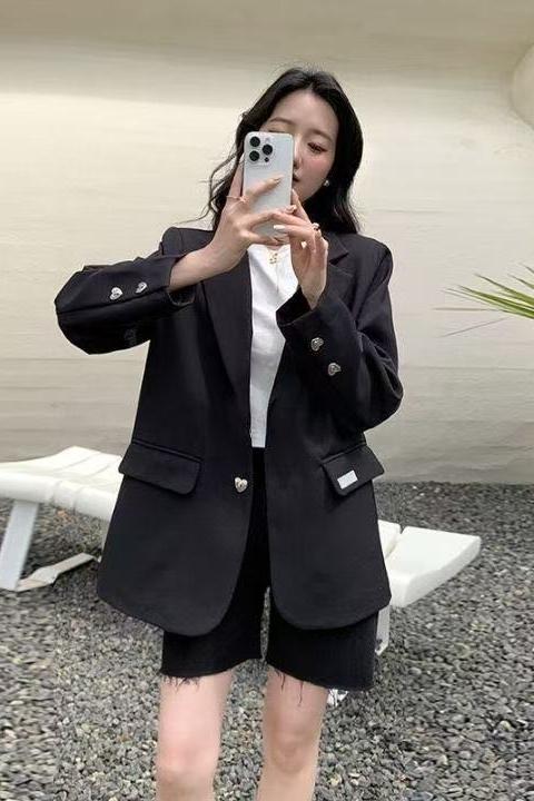 FA56828# 春秋新款爱心扣西装外套女休闲时尚百搭高级感炸街宽松洋气小西服 服裝批發女裝批發服飾貨源