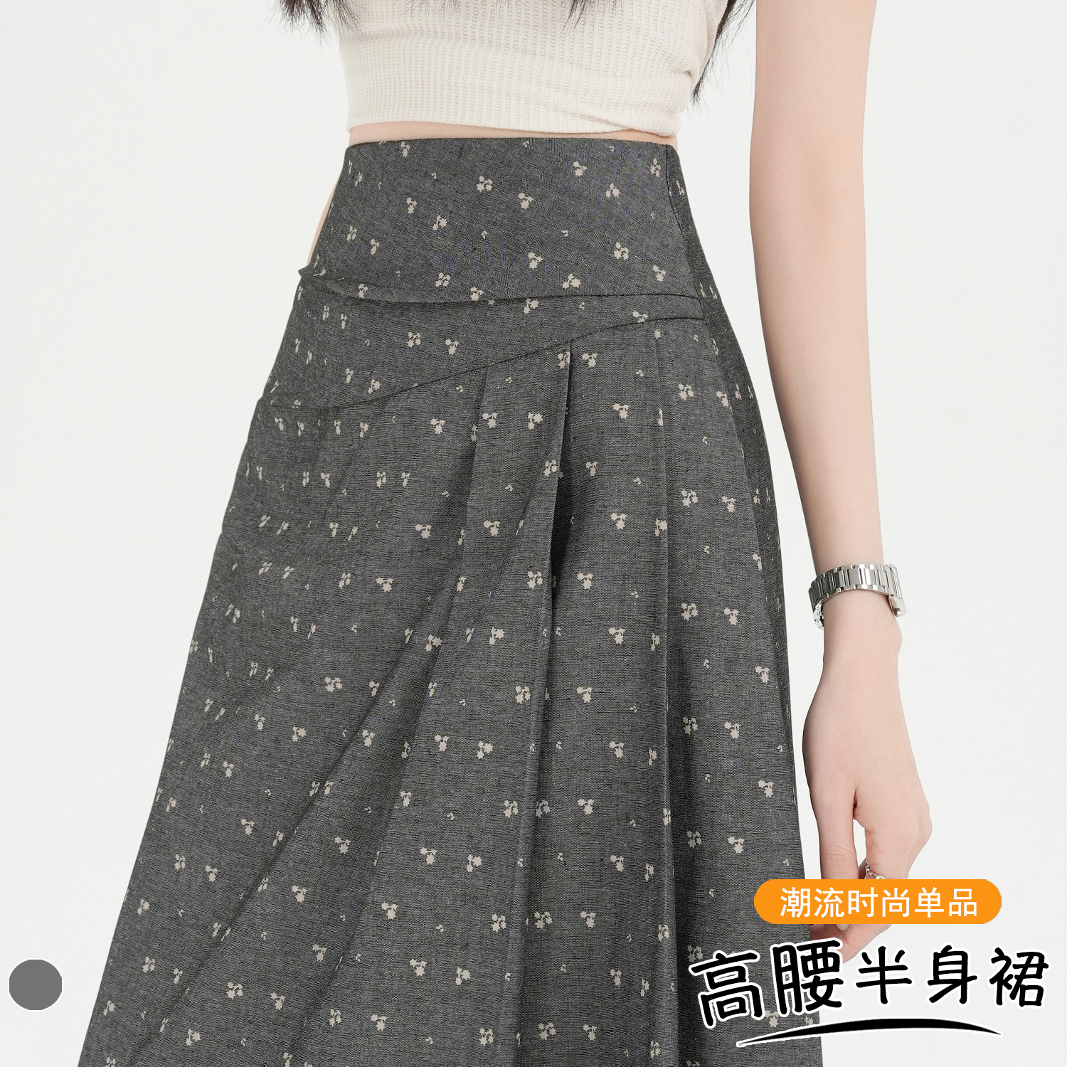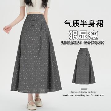 BY10613# 碎花半身裙春夏新款设计感复古褶长裙高腰显瘦大摆A字裙 服裝批發女裝批發服飾貨源