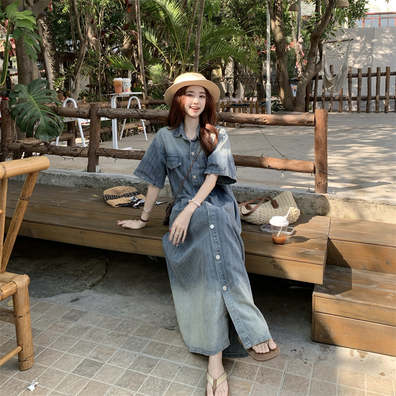 BY12949# 宽松慵懒渐变蓝色小众设计感气质长裙 服裝批發女裝批發服飾貨源
