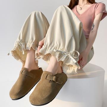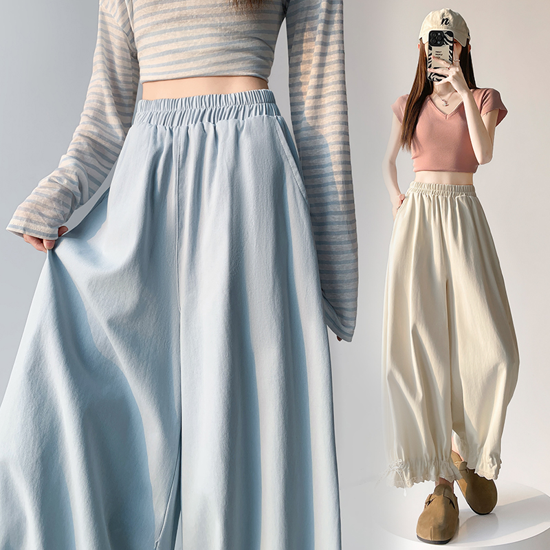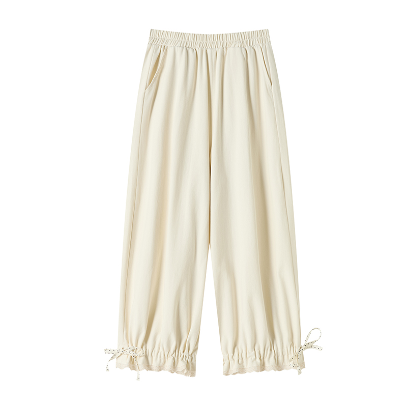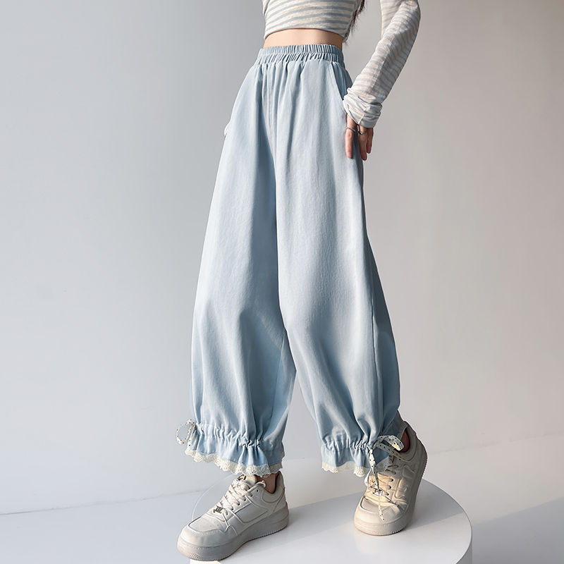 BY13038# 洗水棉阔腿裤女夏季设计感蕾丝高腰九分休闲裤宽松哈伦裤 服裝批發女裝批發服飾貨源
