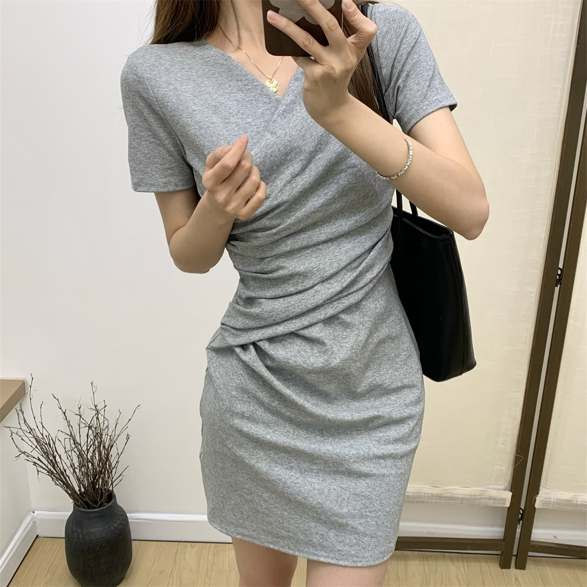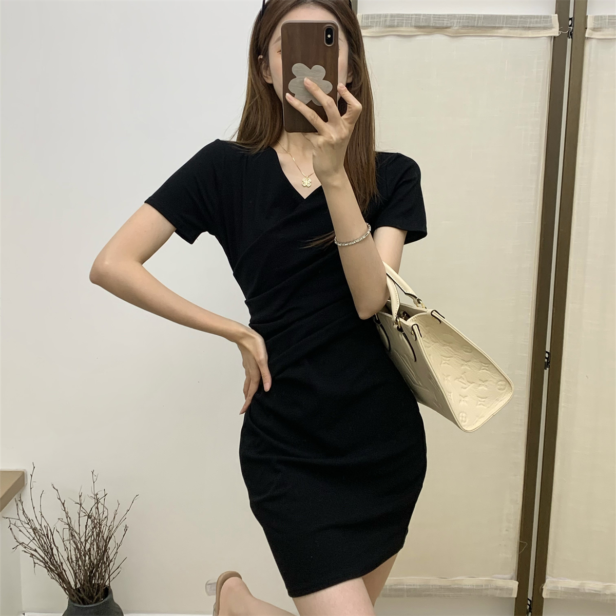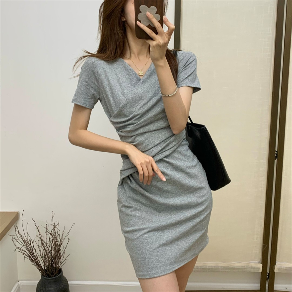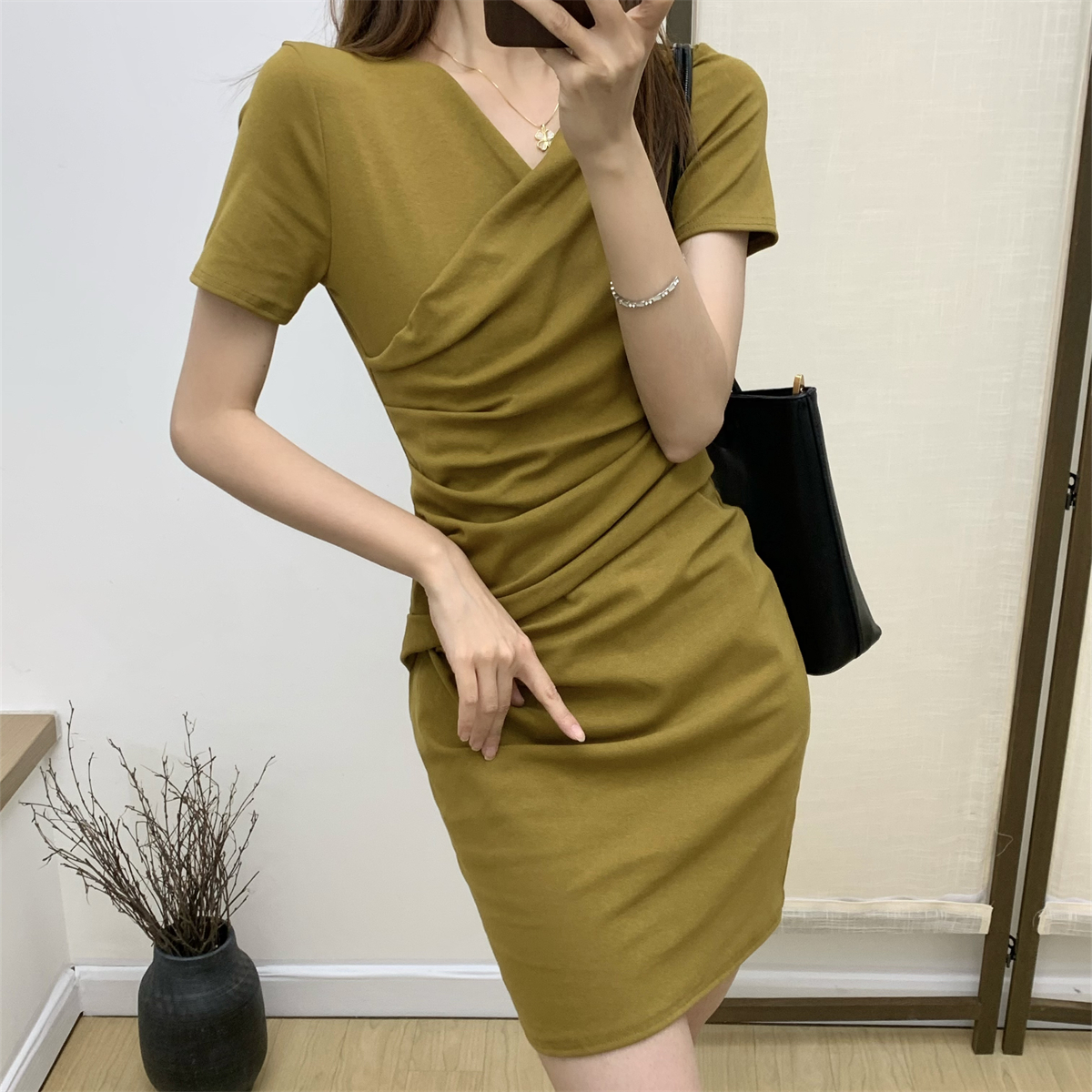 BY13043# 轻熟风交叉褶皱连衣裙女修身显身材高级感日常出街百搭一步裙 服裝批發女裝批發服飾貨源