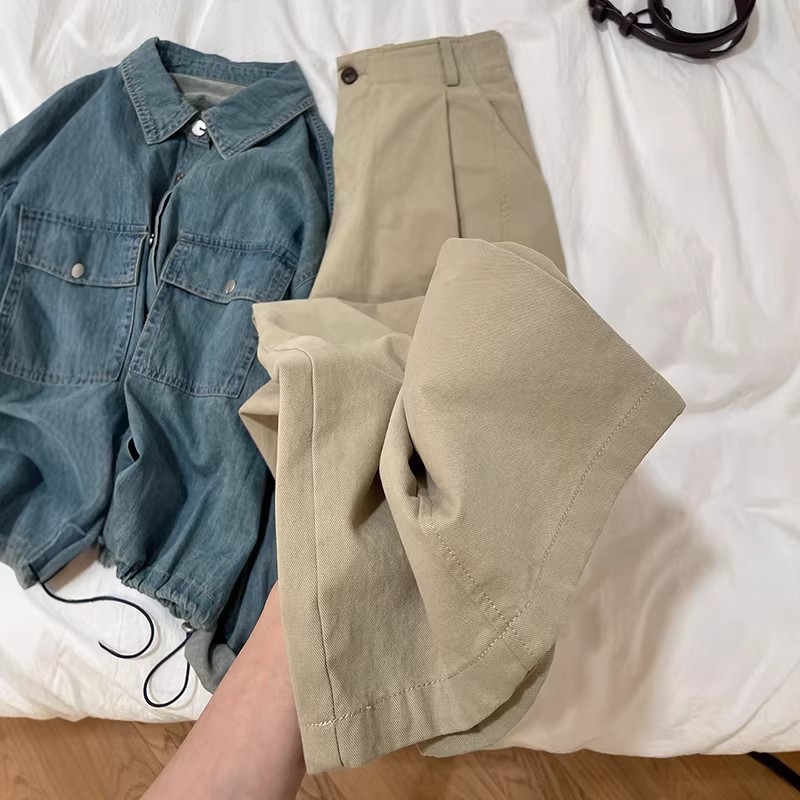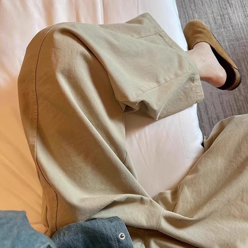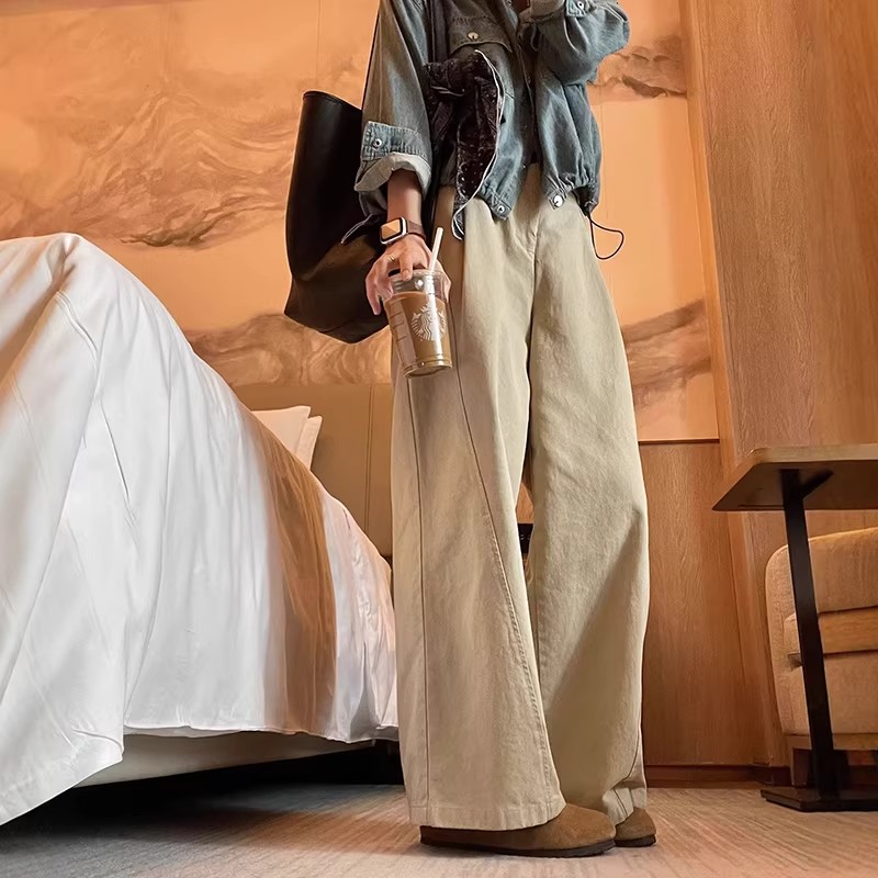 BY13121# 水洗棉高腰显瘦休闲裤女秋季百搭直筒阔腿拖地裤 服裝批發女裝批發服飾貨源