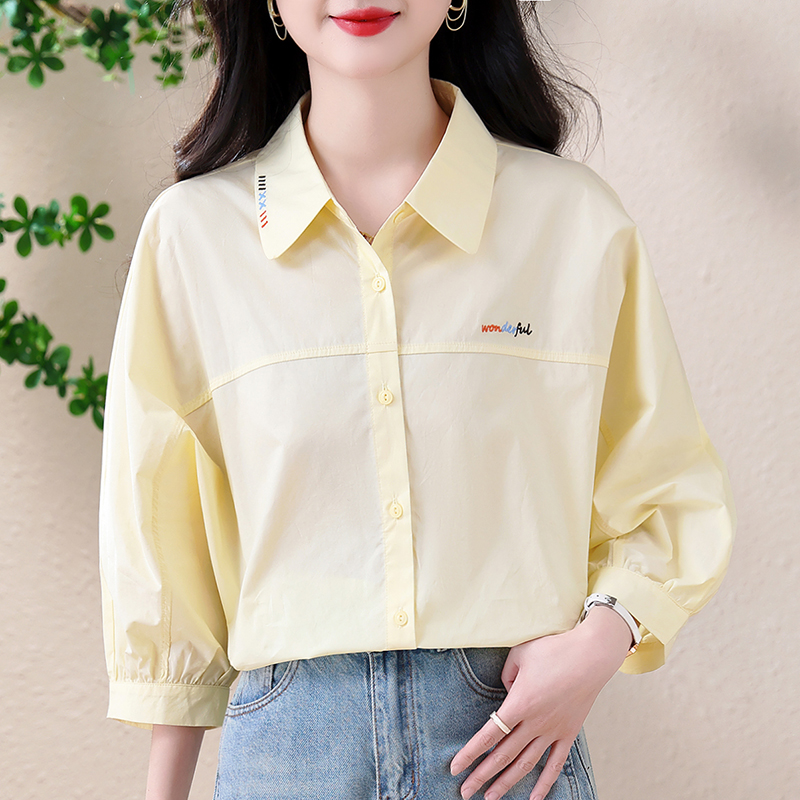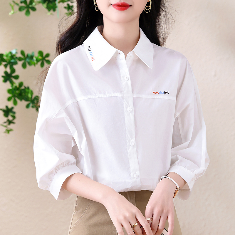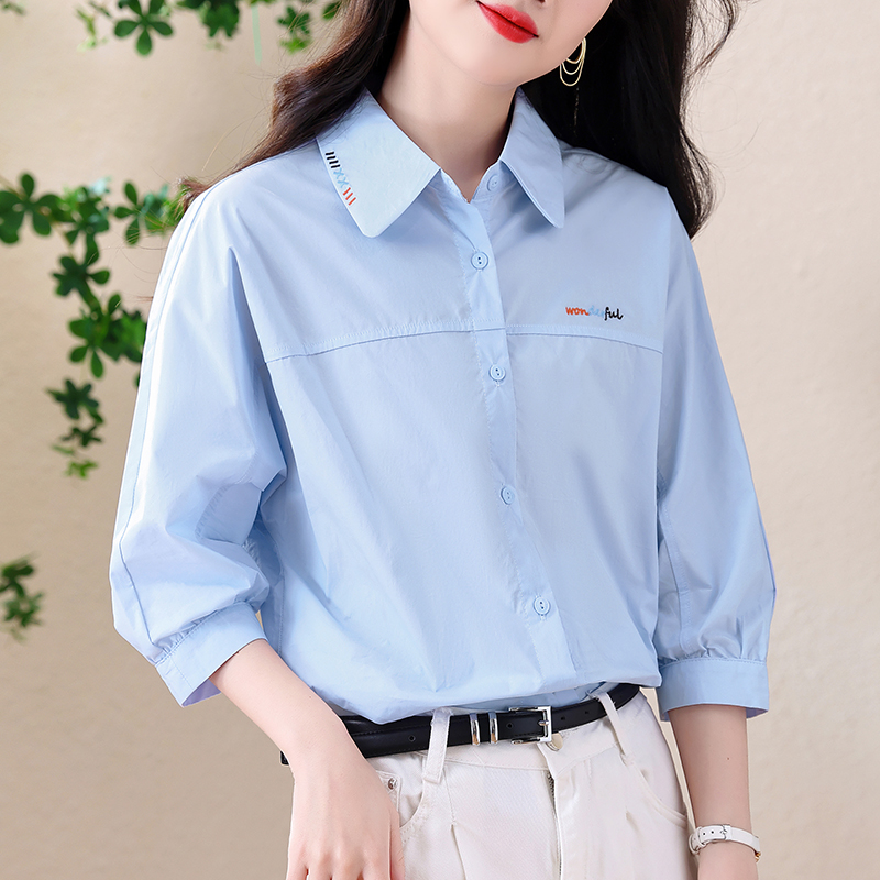 BY13266# 法式通勤白衬衫女春夏款七分袖宽松衬衣 服裝批發女裝批發服飾貨源