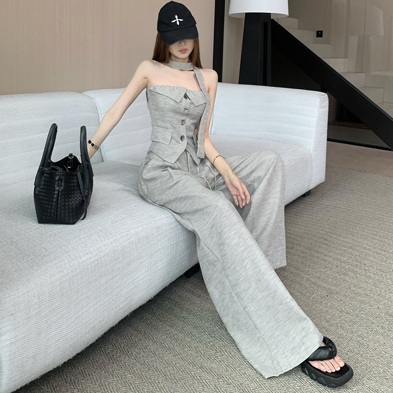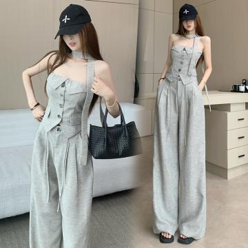 BY13282# 纯欲风性感辣妹抹胸上衣阔腿裤绝美巨好看的套装女春季新款两件套 服裝批發女裝批發服飾貨源