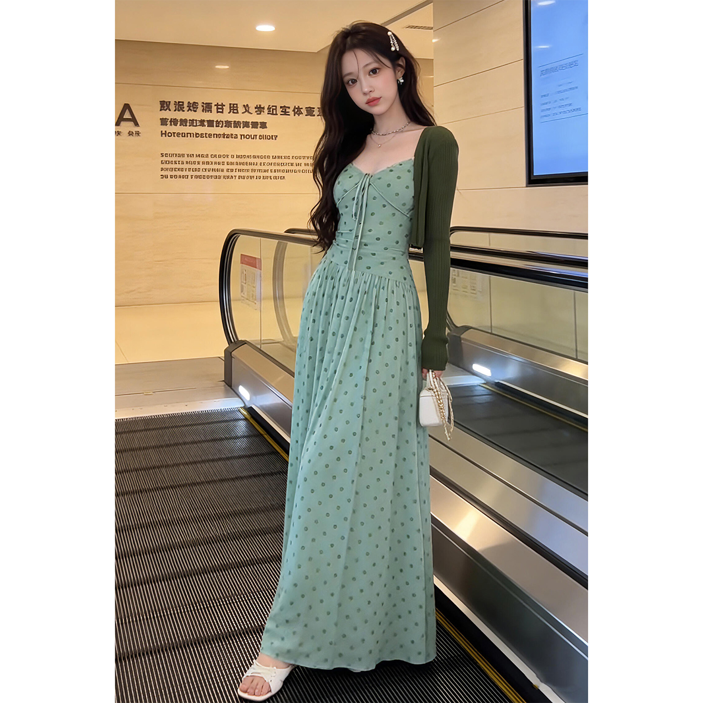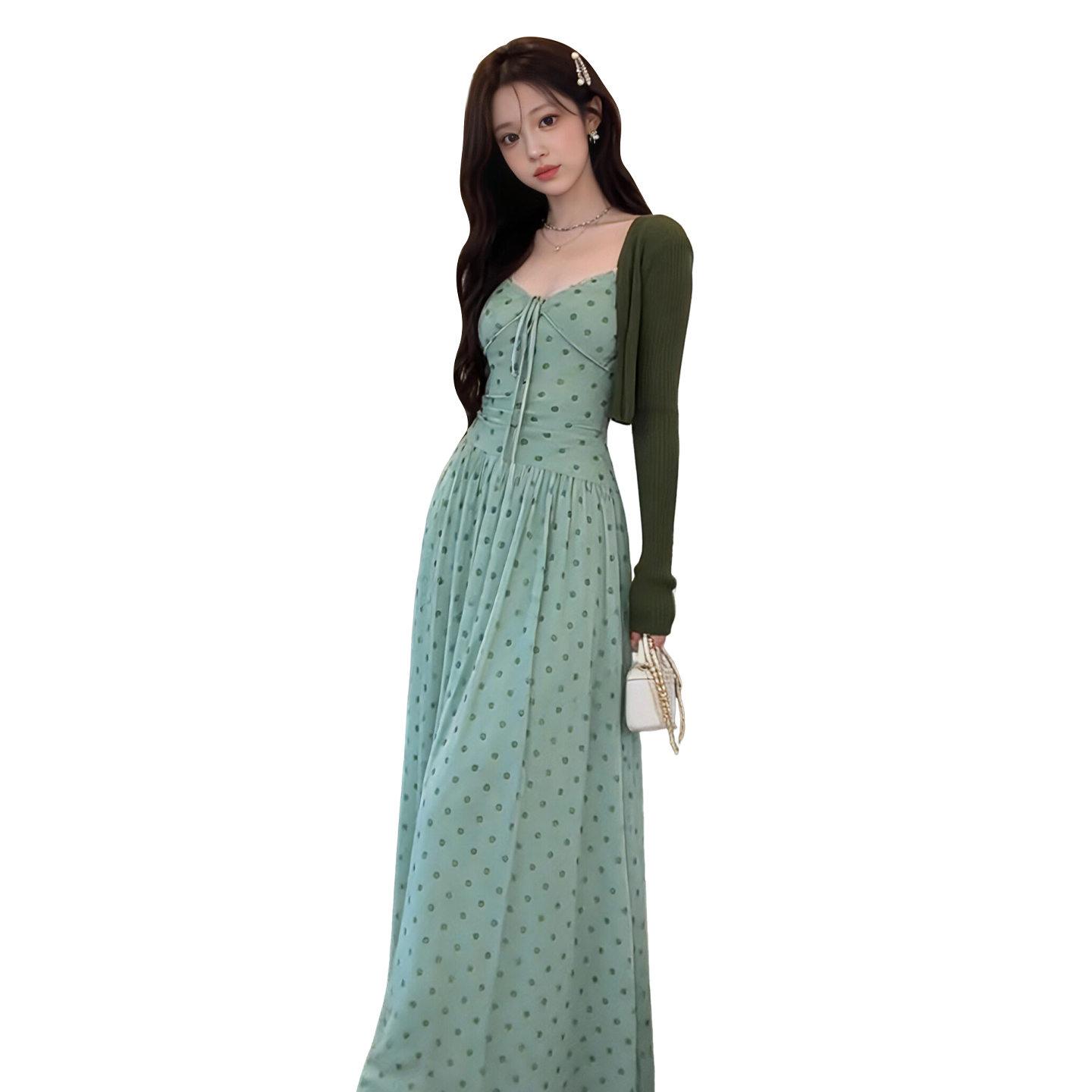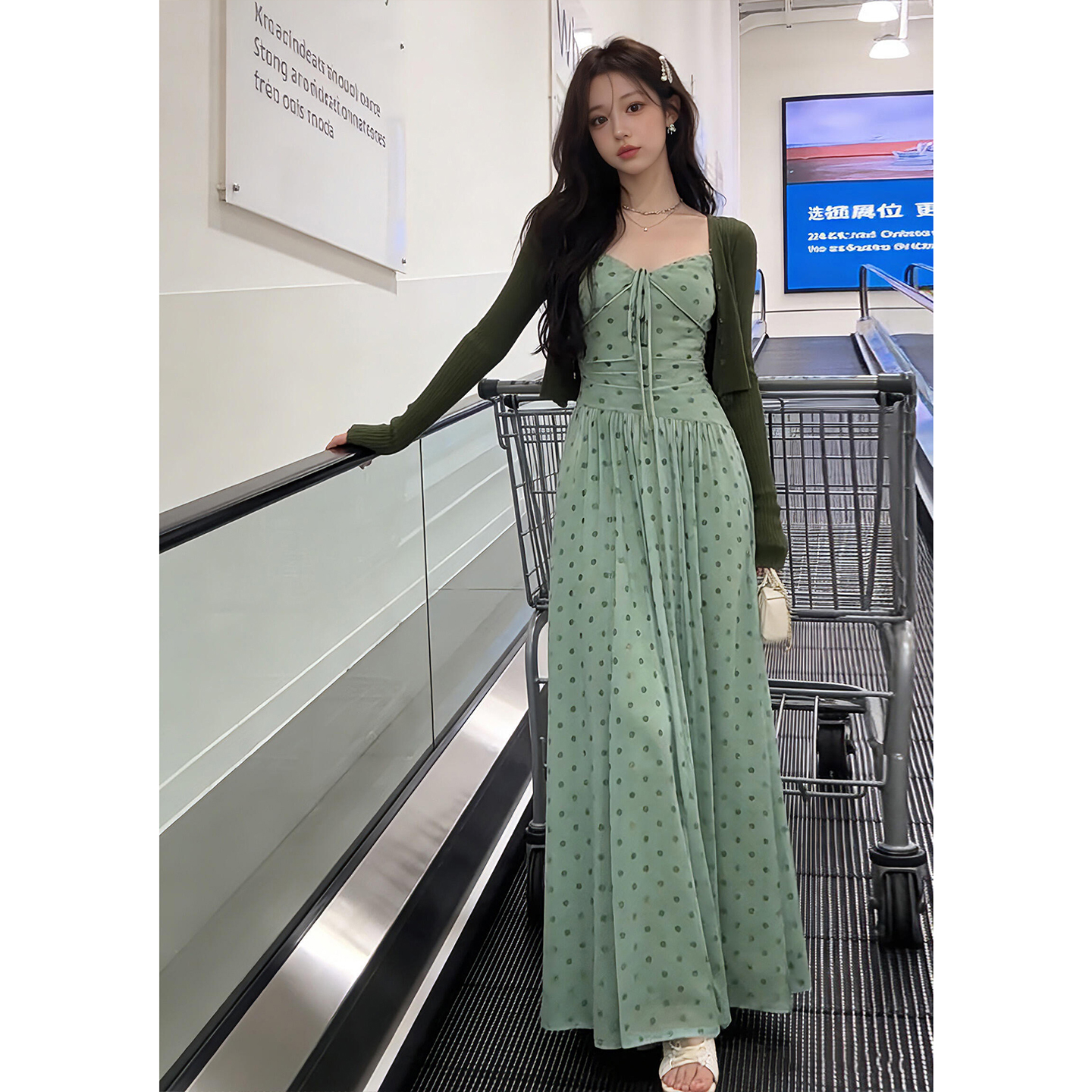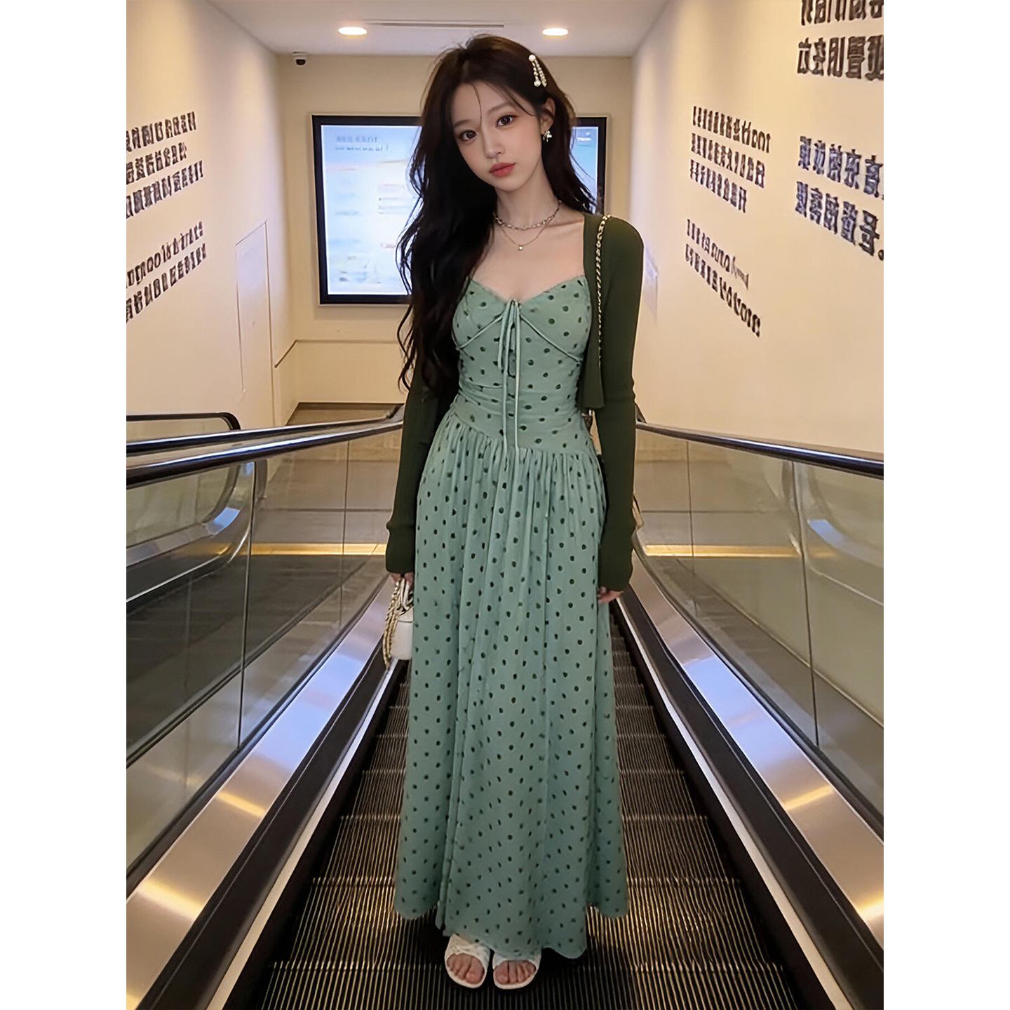 BY13333# 法式红色波点连衣裙女早春季新款绝美穿搭高级感收腰长裙套装 服裝批發女裝批發服飾貨源