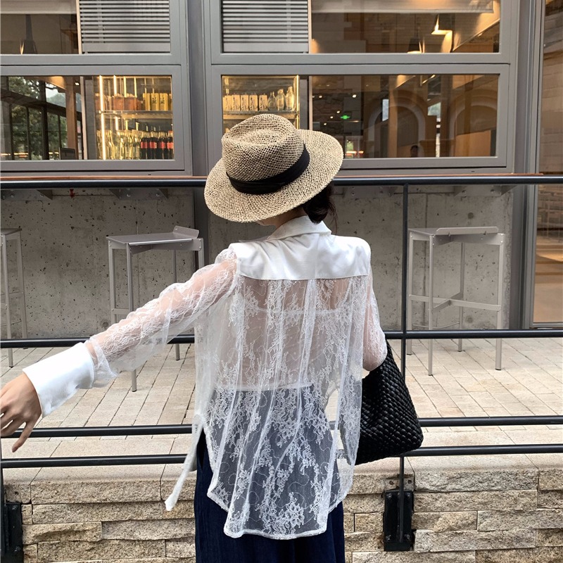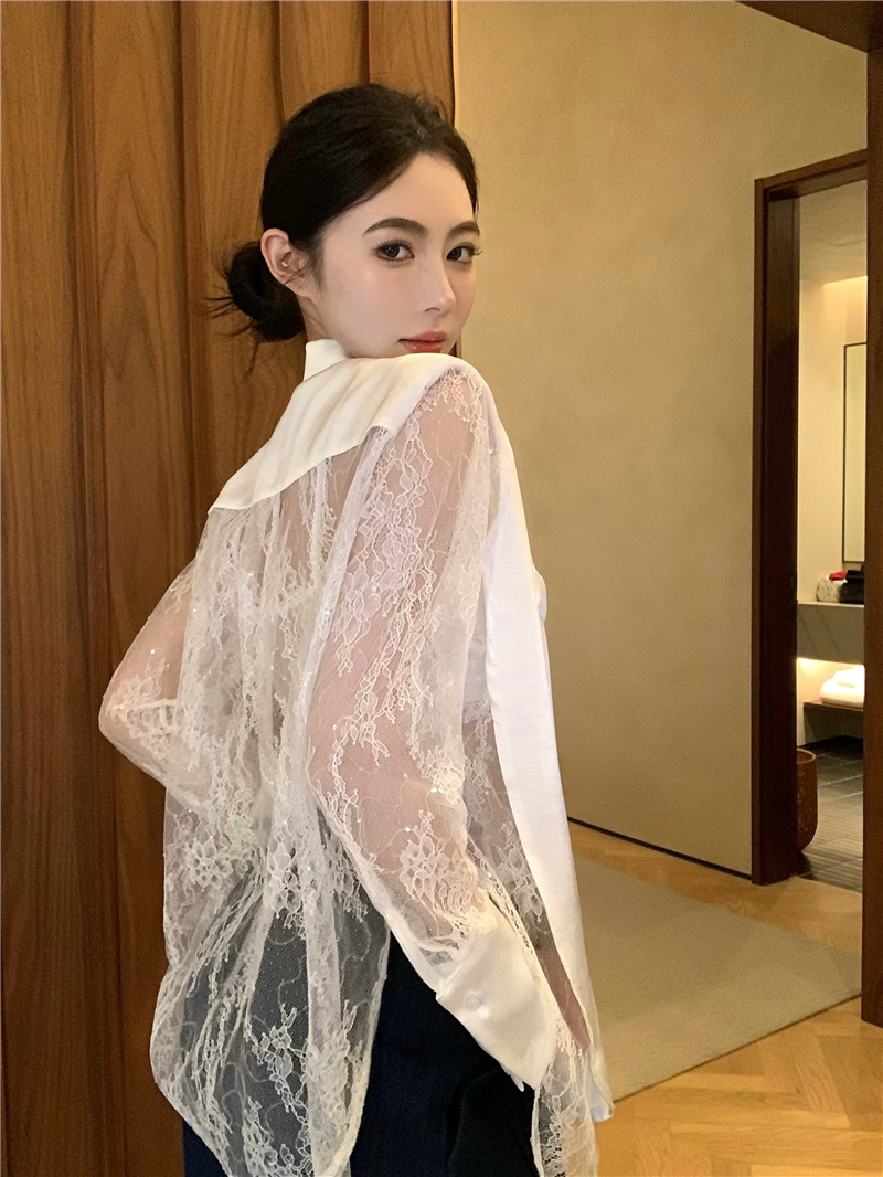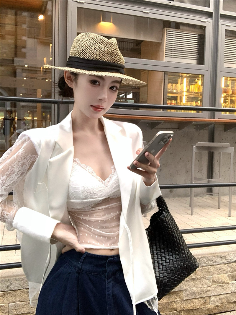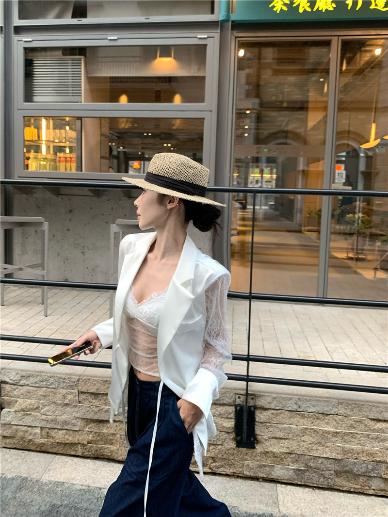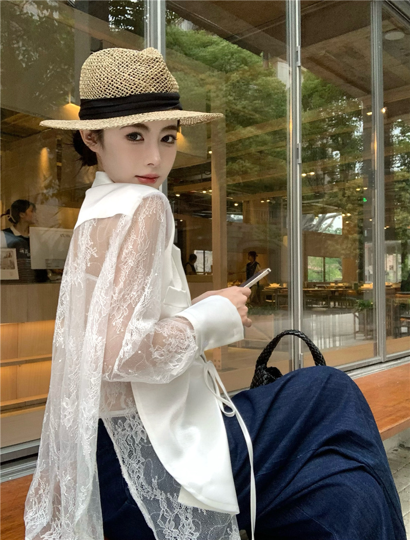 BY13430# 新款拼接亮片蕾丝西服领薄外套时尚醋酸防晒西服女 服裝批發女裝批發服飾貨源