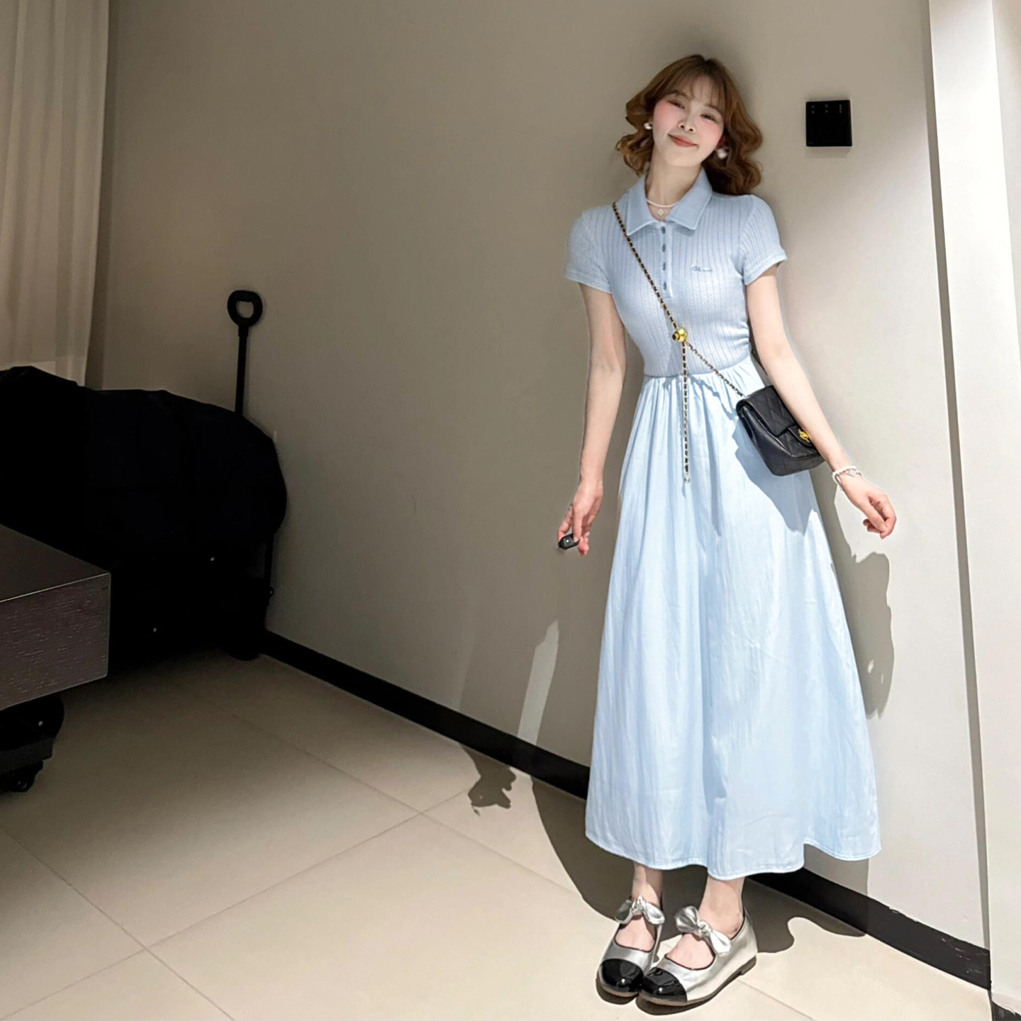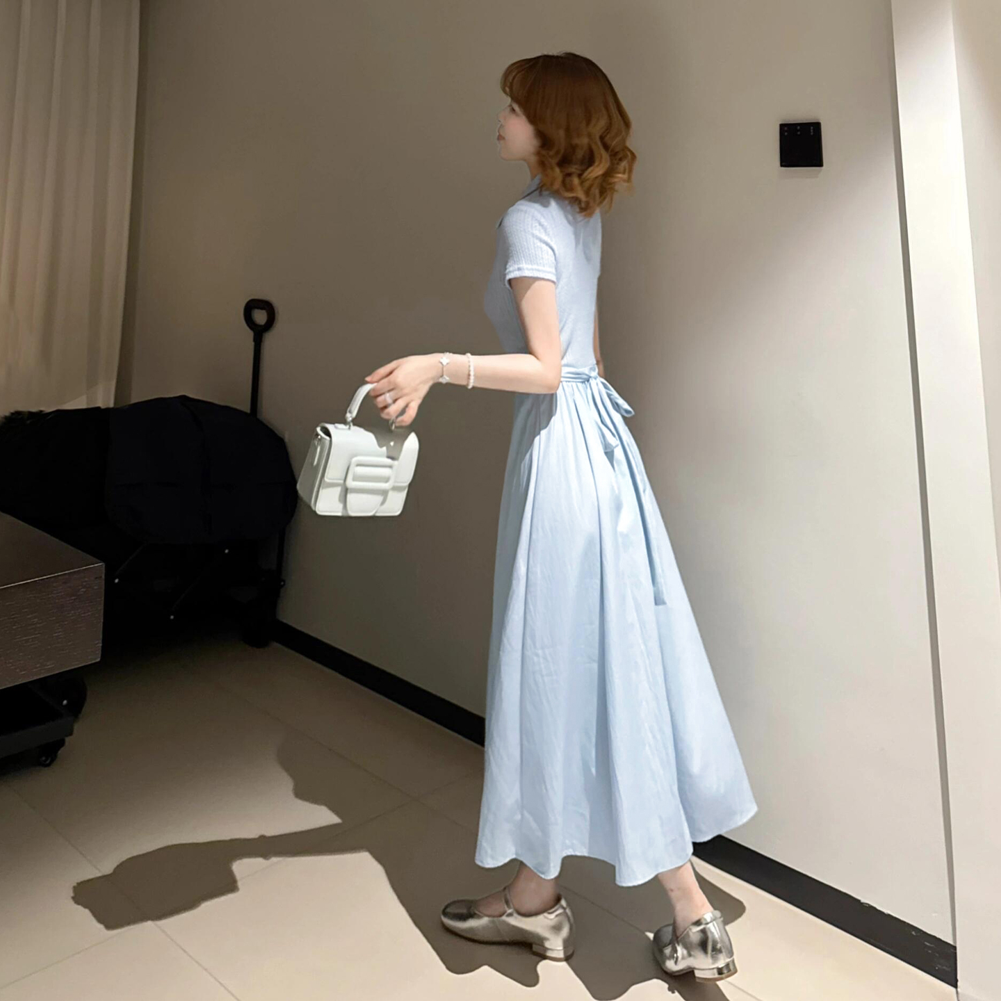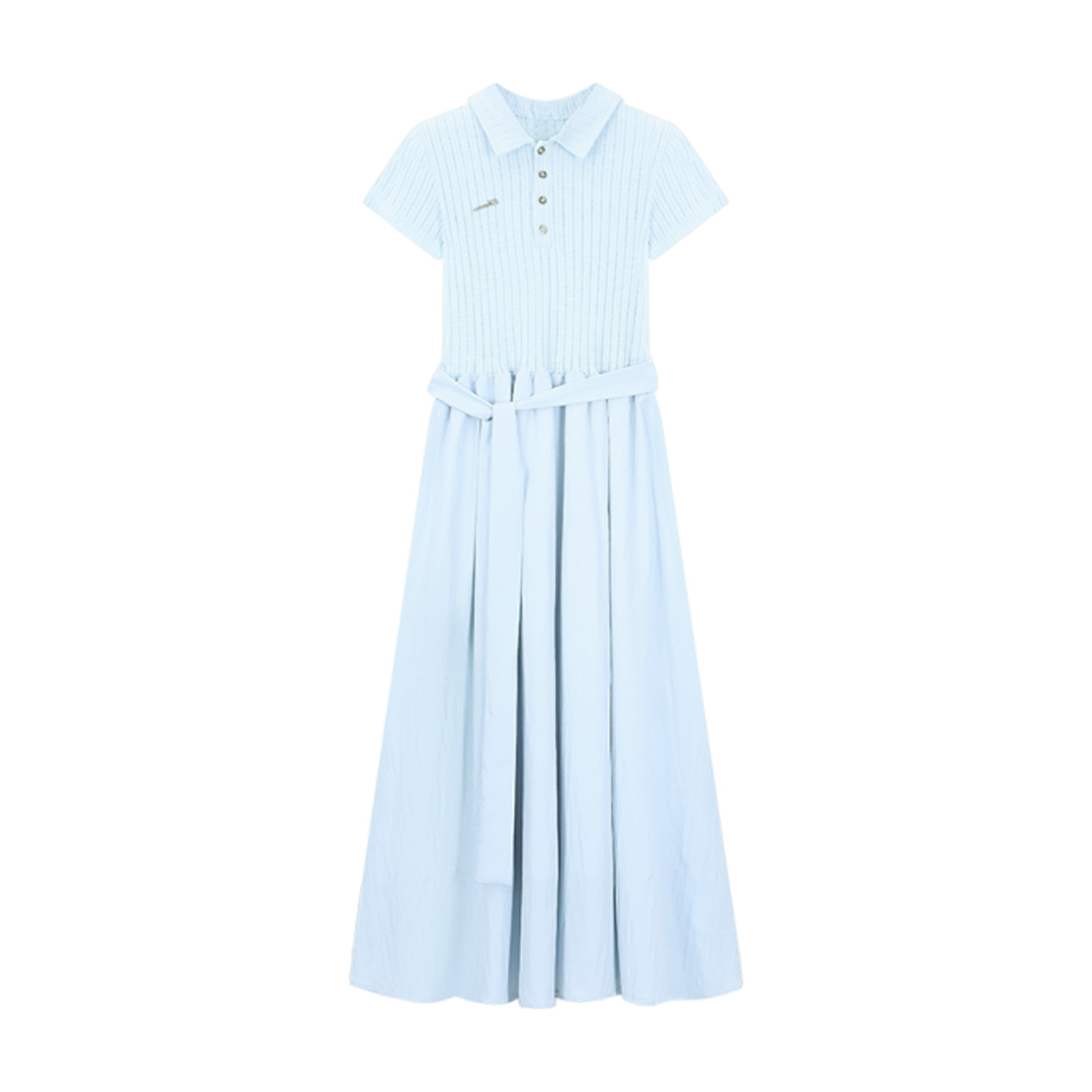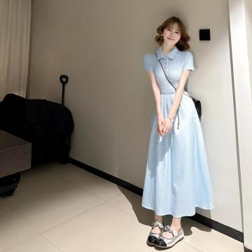 BY13722# 法式蓝色polo领连衣裙子女夏季新款小个子巨好看气质收腰长裙 服裝批發女裝批發服飾貨源