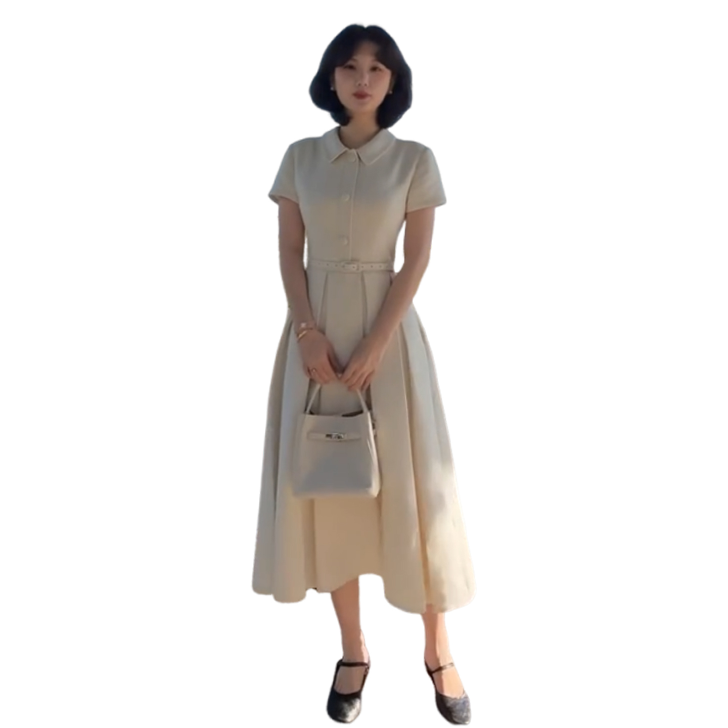 BY13725# 法式高级感polo领连衣裙子女夏季新款小个子气质绝美收腰长裙 服裝批發女裝批發服飾貨源