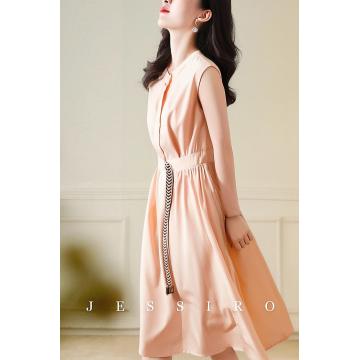 BY13783# 时尚连衣裙女新款夏季圆领无袖时尚洋气减龄收腰高级感长裙 服裝批發女裝批發服飾貨源