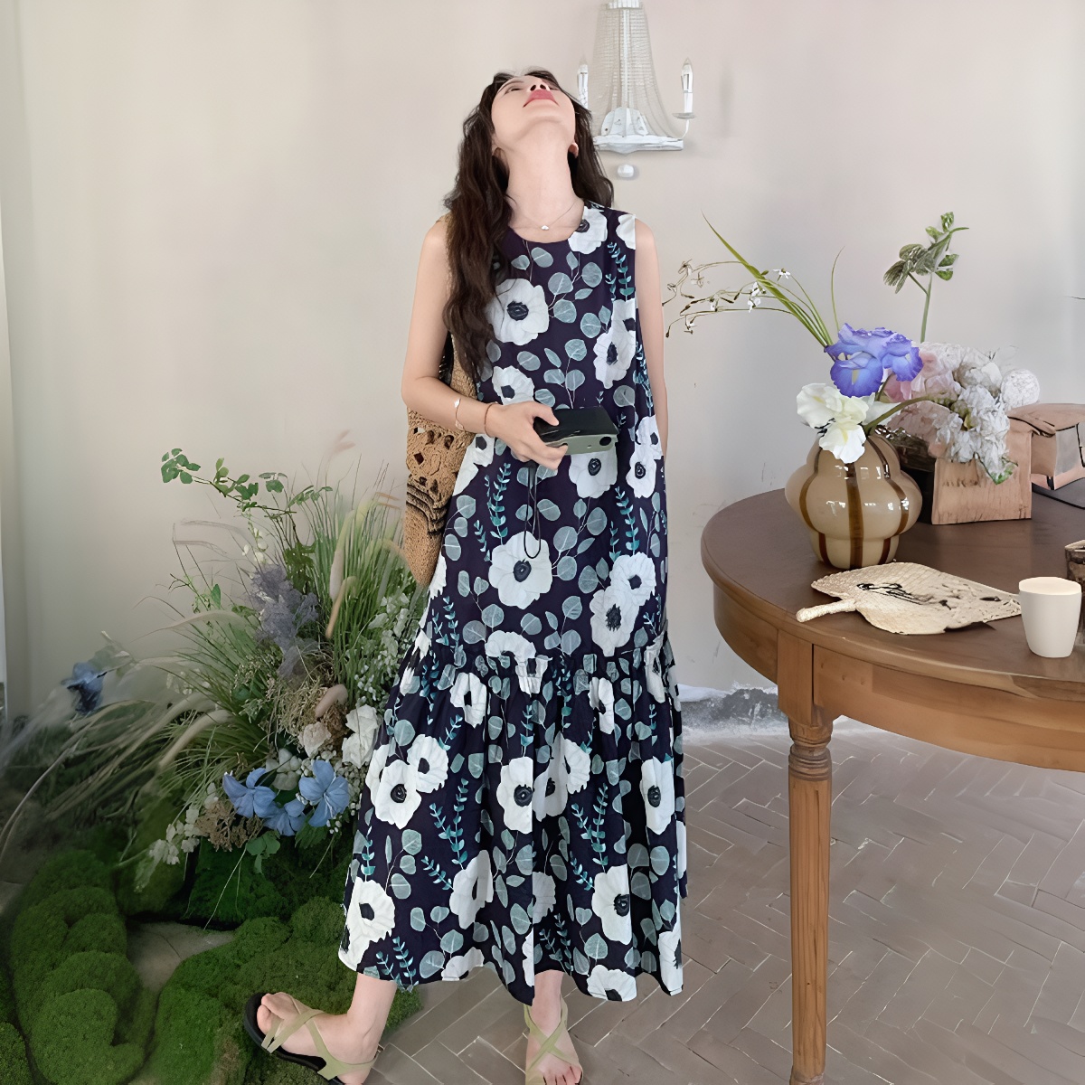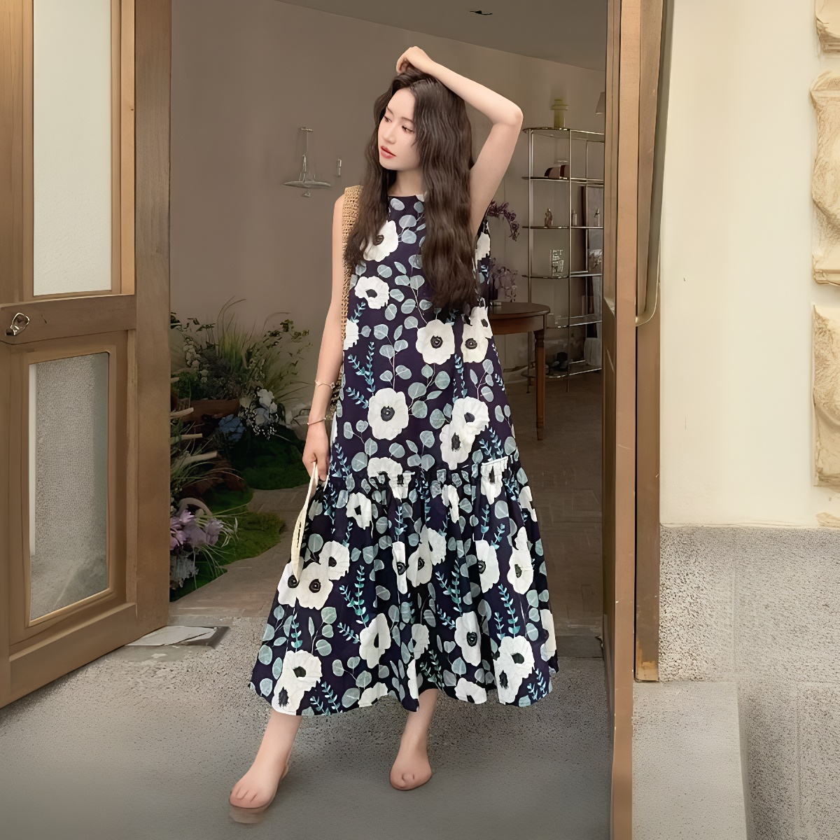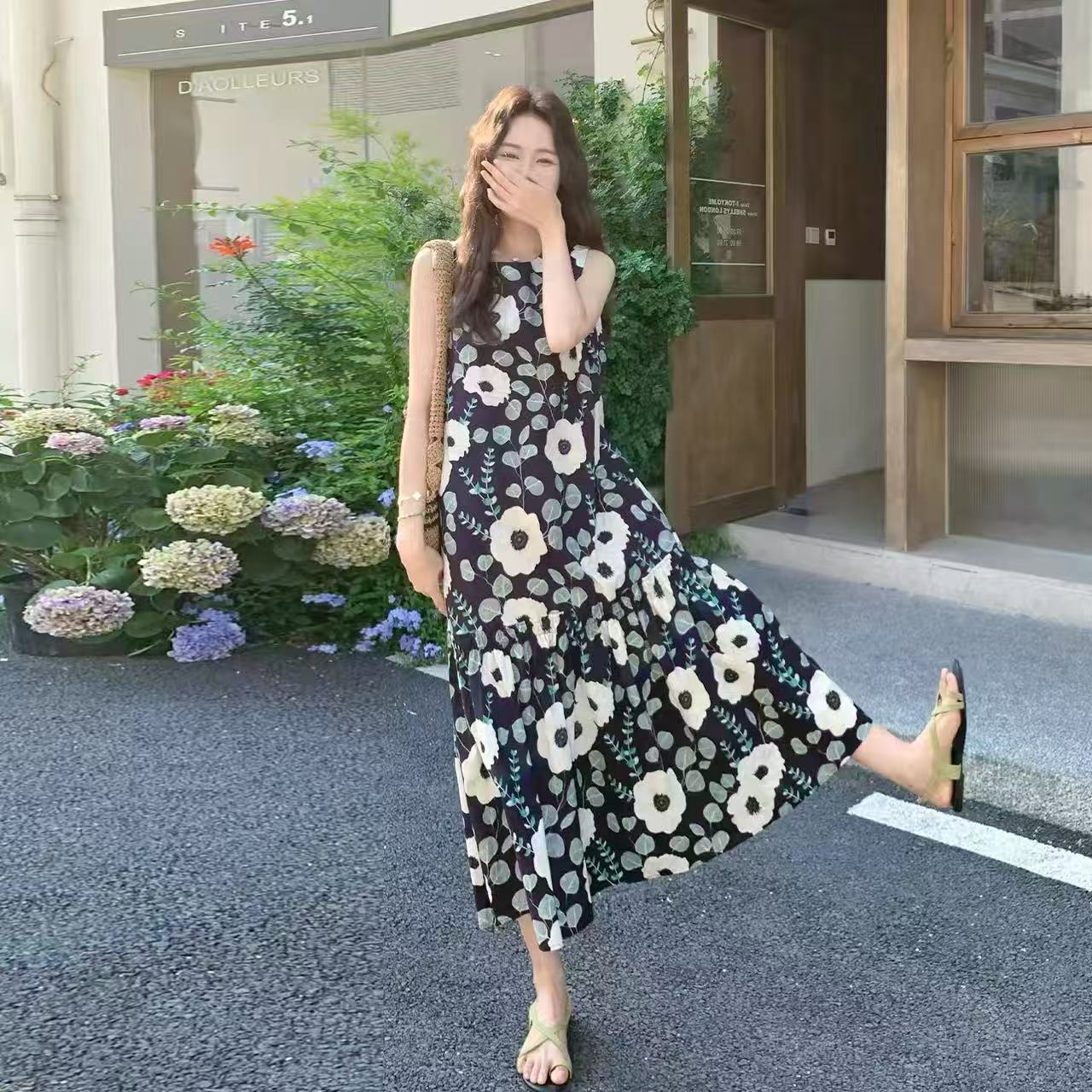 BY13788# 新款碎花连衣裙女夏高级感减龄海边度假宽松显瘦沙滩背心裙 服裝批發女裝批發服飾貨源