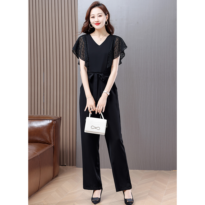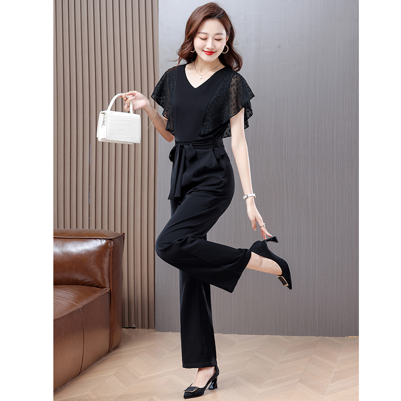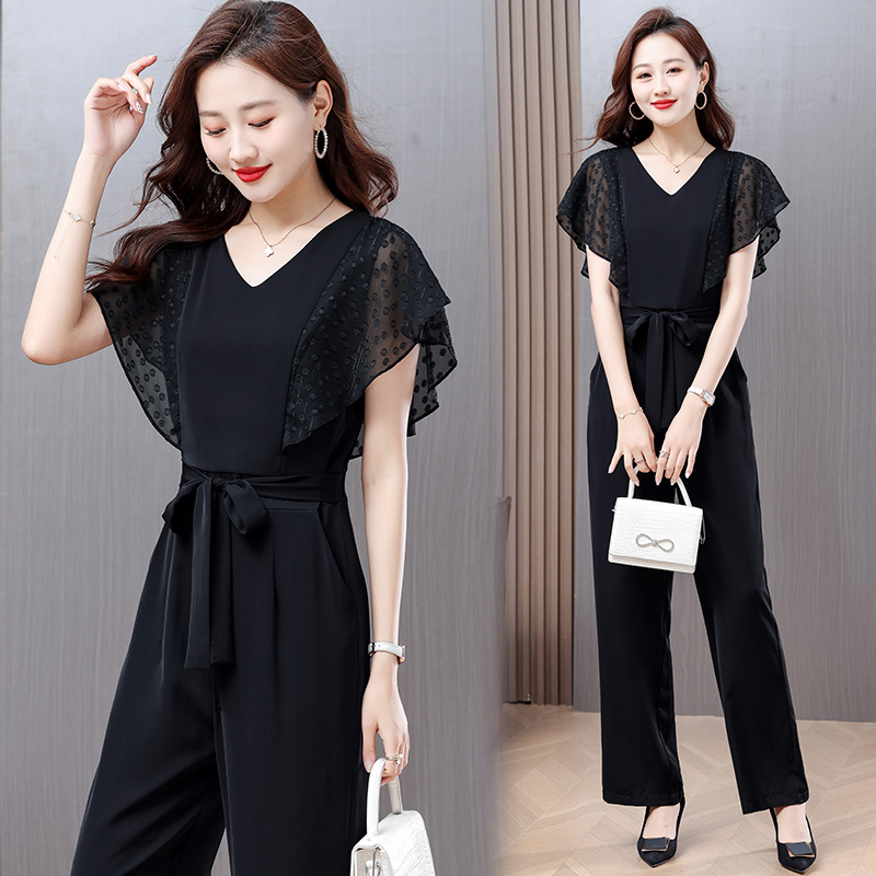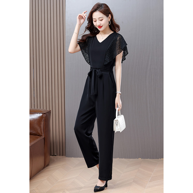 BY14671# 秒变大长腿连体裤子夏季新款简约气质雪纺拼接轻薄百搭连体裤 服裝批發女裝批發服飾貨源