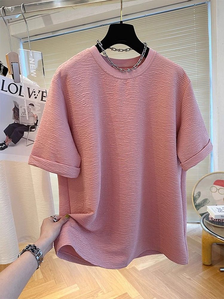 BY15626# 韩版简约百搭宽松胖MM300斤大码圆领休闲纯色短袖T恤夏季显瘦上衣 服裝批發女裝批發服飾貨源