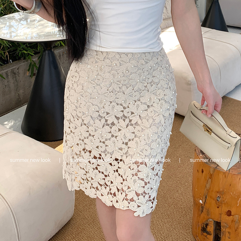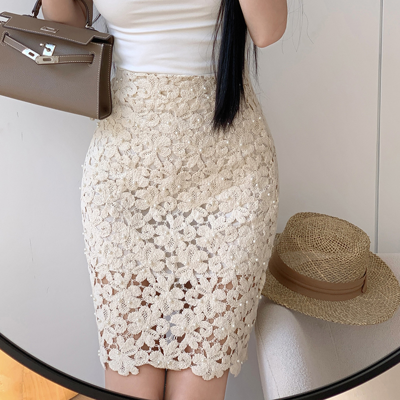 BY18097# 新款夏季蕾丝重工钉珠包臀高腰半身裙女短款裙子中裙子 服裝批發女裝批發服飾貨源