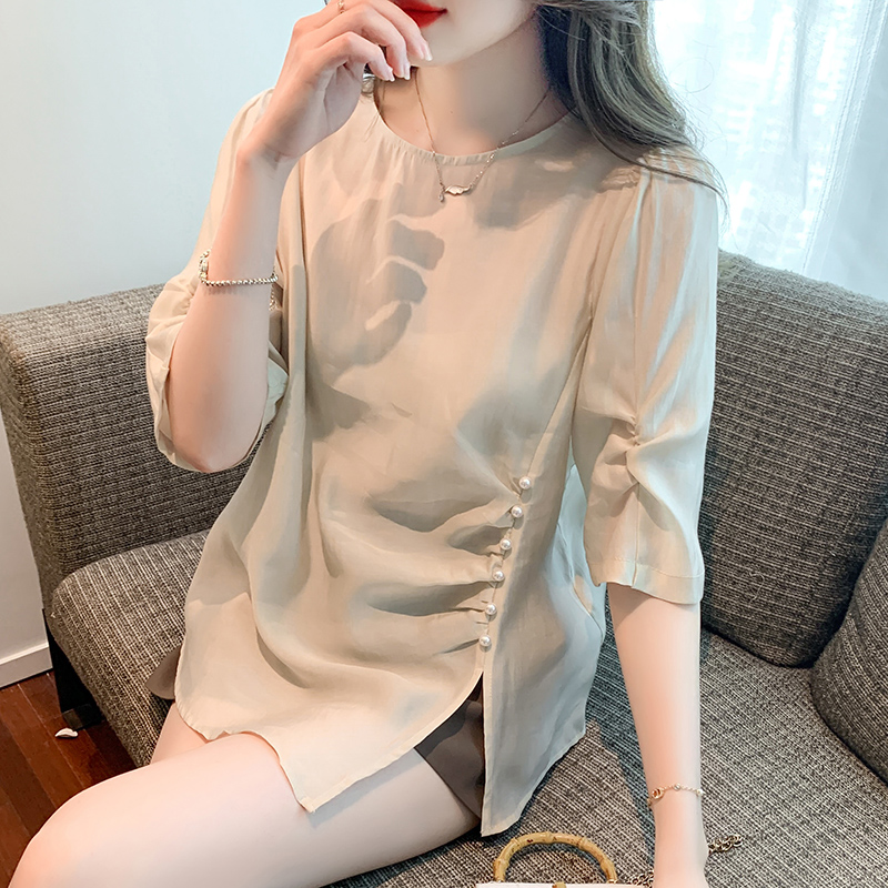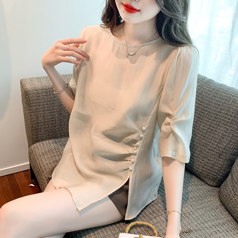 BY18105# 夏季新款蕾丝衫/雪纺衫简约套头宽松型淑女百搭纯色 服裝批發女裝批發服飾貨源