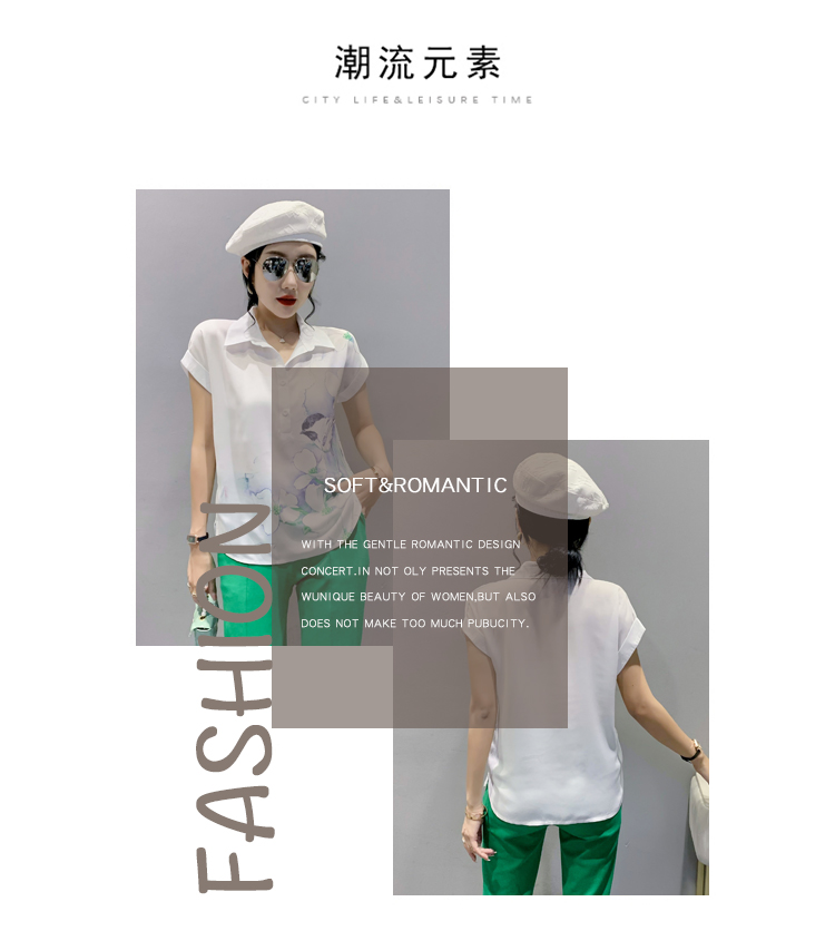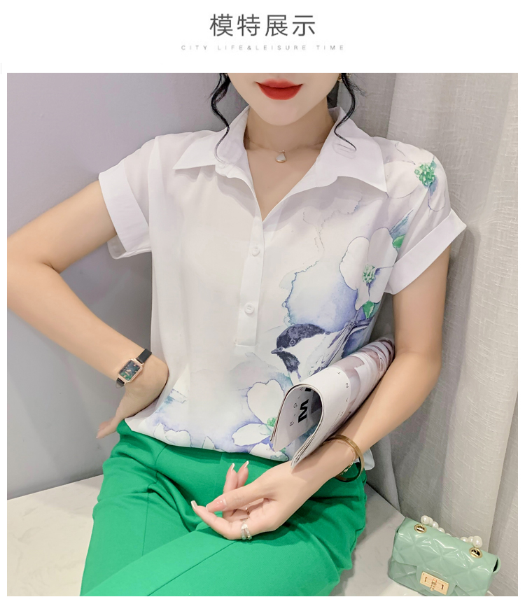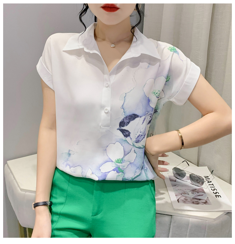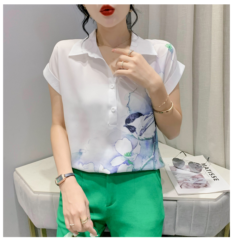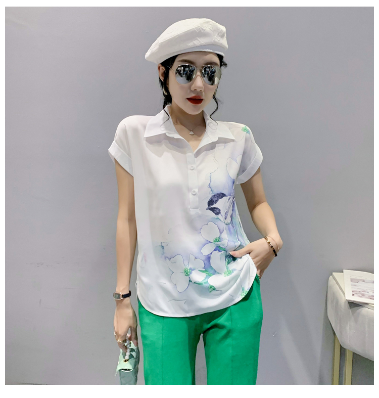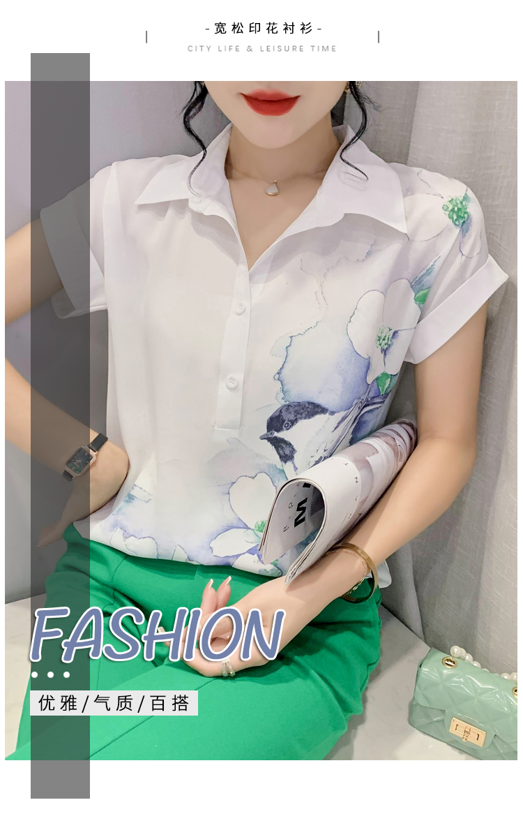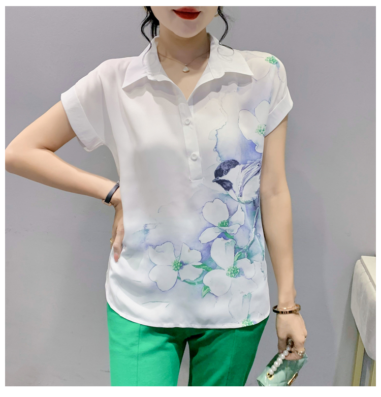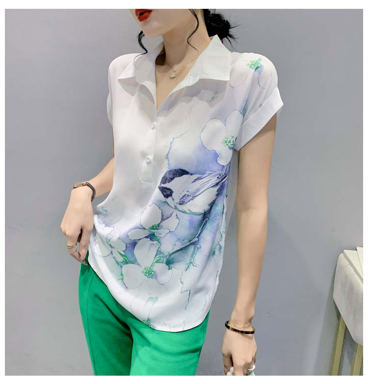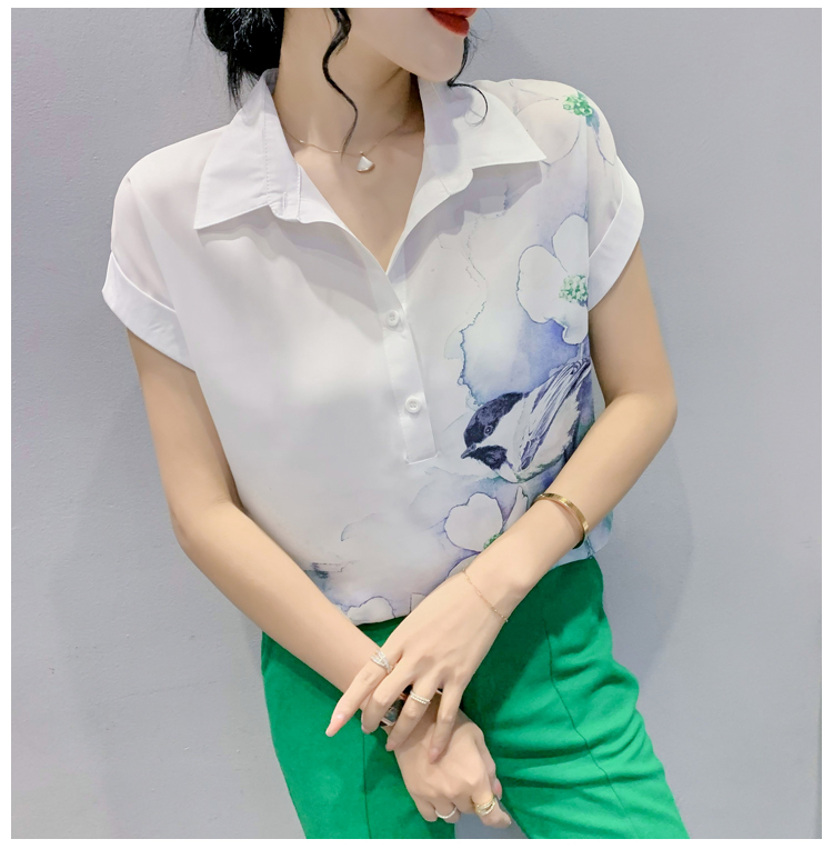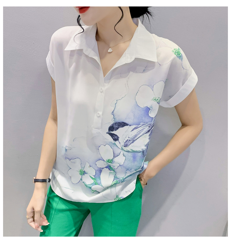 TR27705# #夏季新款时尚印花雪纺蝙蝠短袖衬衣百搭宽松上衣女 女装批发服装批发货源