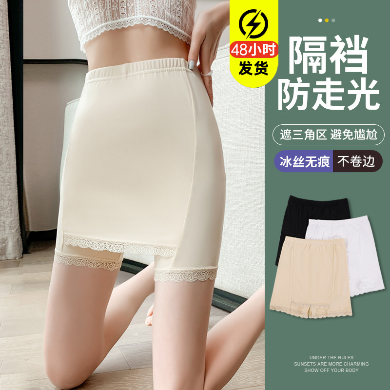 CX9982# 最便宜服装批 发双层遮挡三角区防走光安全裤女夏蕾丝无痕不卷边可外穿隔层打底裤