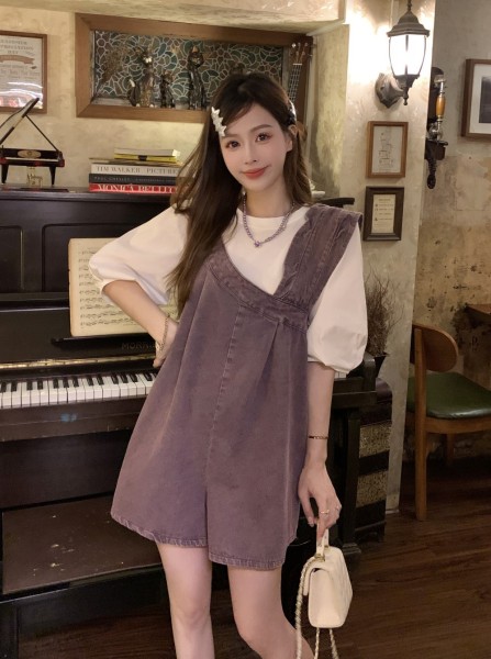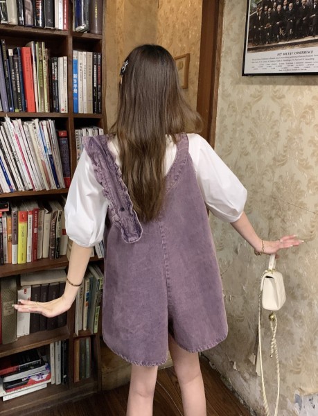 TR34561# 设计感不规则木耳边牛仔背带裤女夏季宽松显瘦阔腿短裤 服装批发女装批发服饰货源