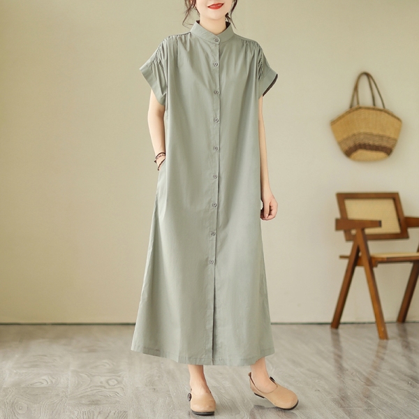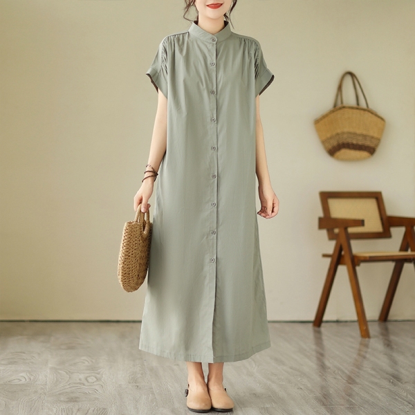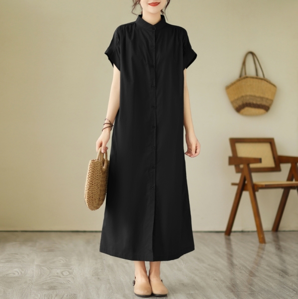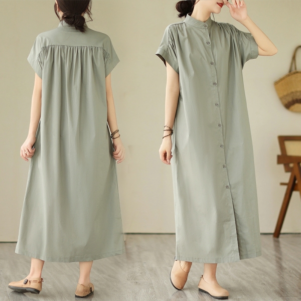TR45834# 200斤胖mm短袖立领排扣衬衫裙宽松休闲长款连衣裙 服装批发女装批发服饰货源