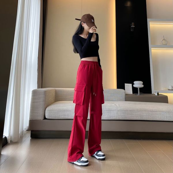 TR54630# 工装裤女秋冬加厚新款高腰垂感透气速干裤美式哈伦运动裤 服装批发服饰货源女装批发