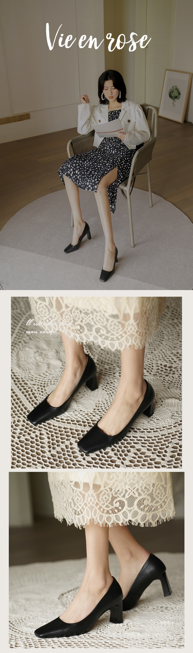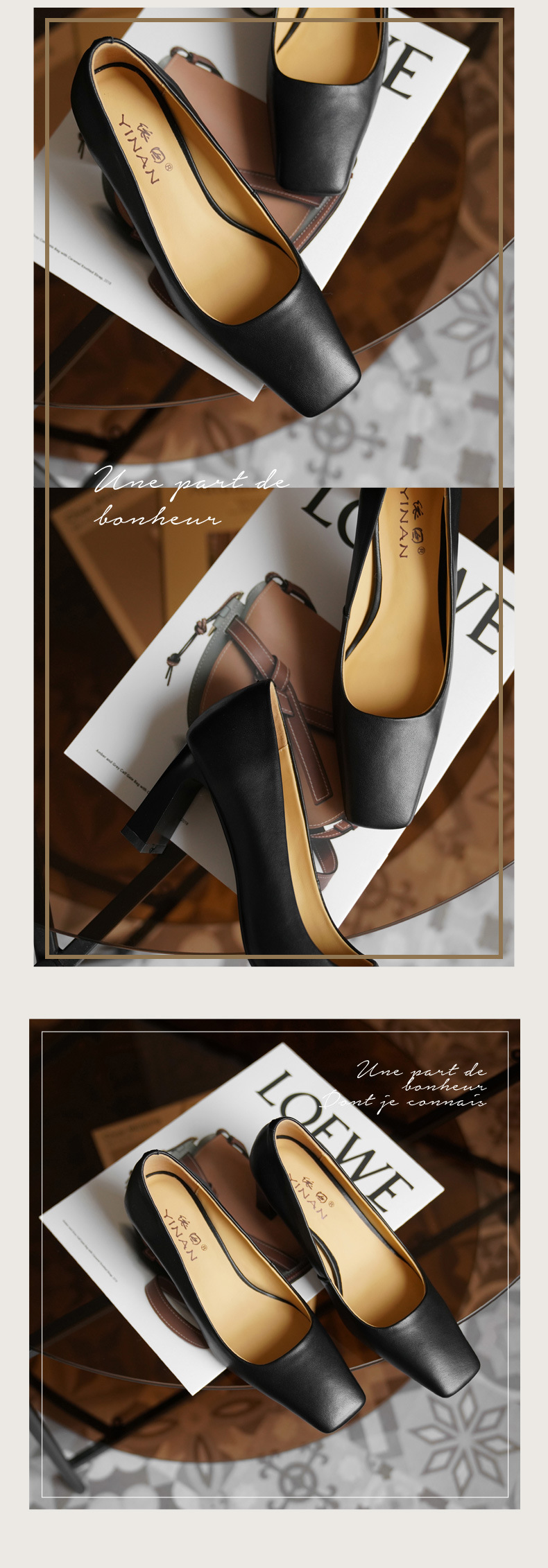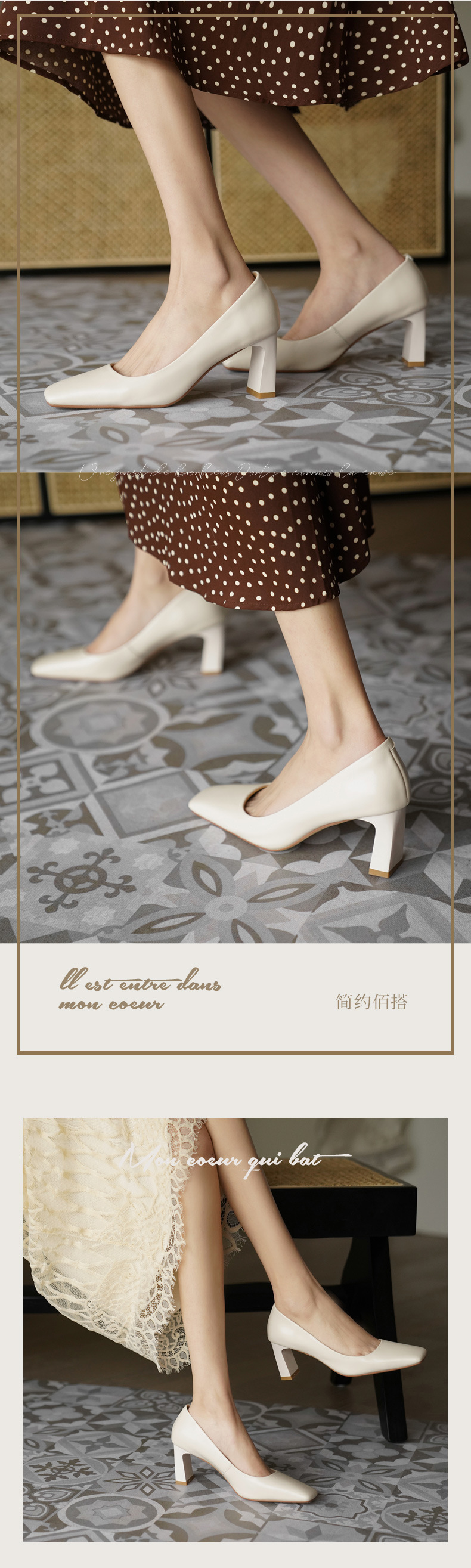 X-32069# 高跟鞋女新款浅口方头法式复古百搭春款粗跟单鞋女 鞋子批發女鞋批發鞋子靴子貨源