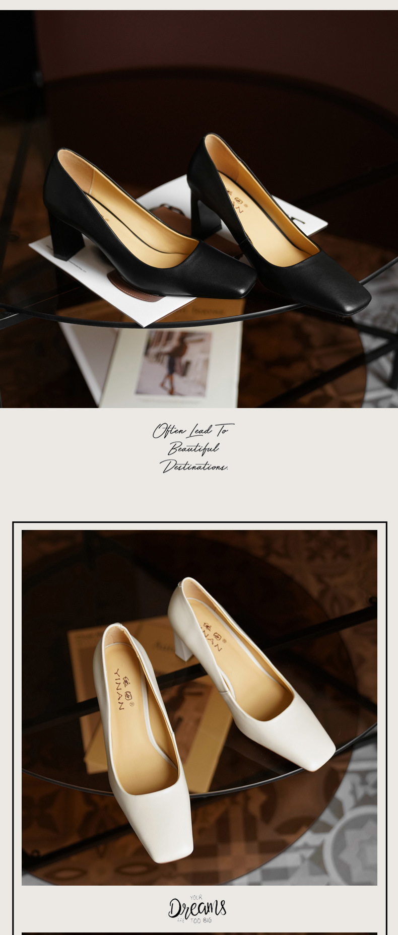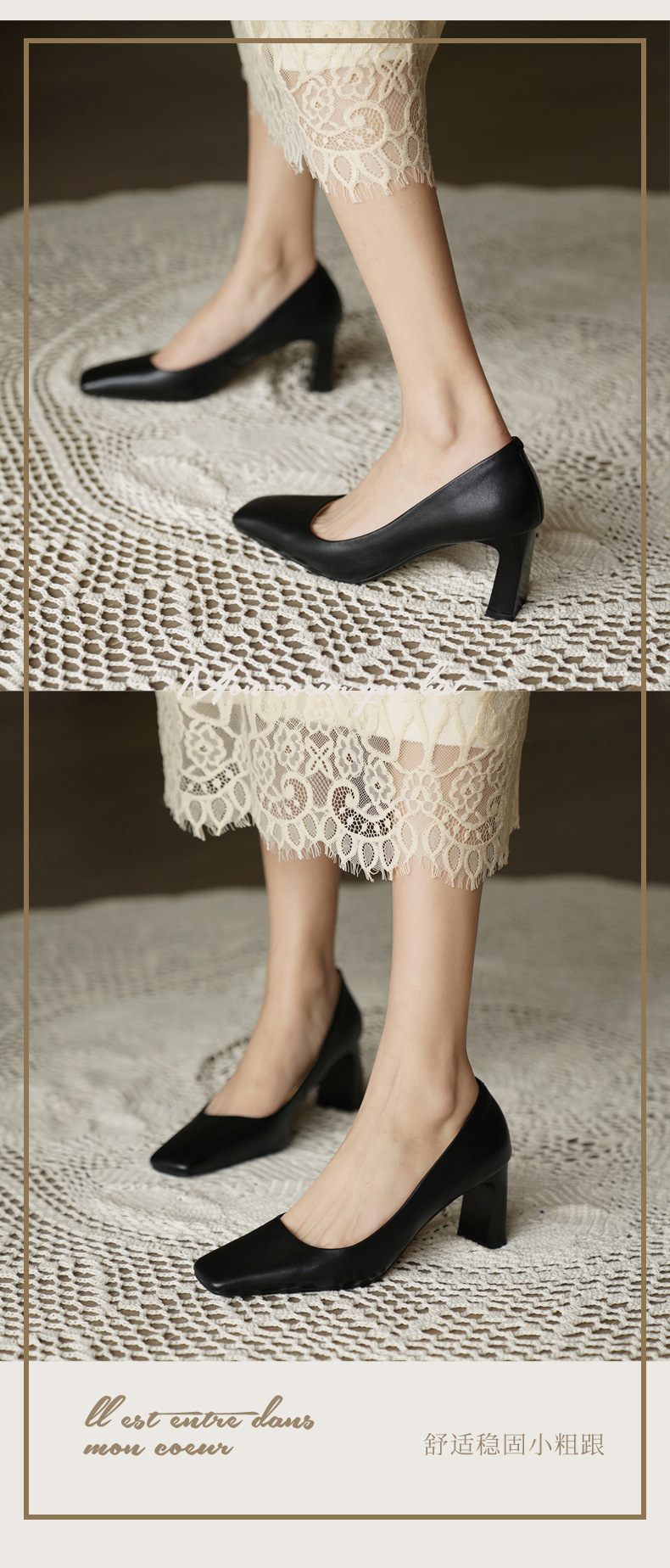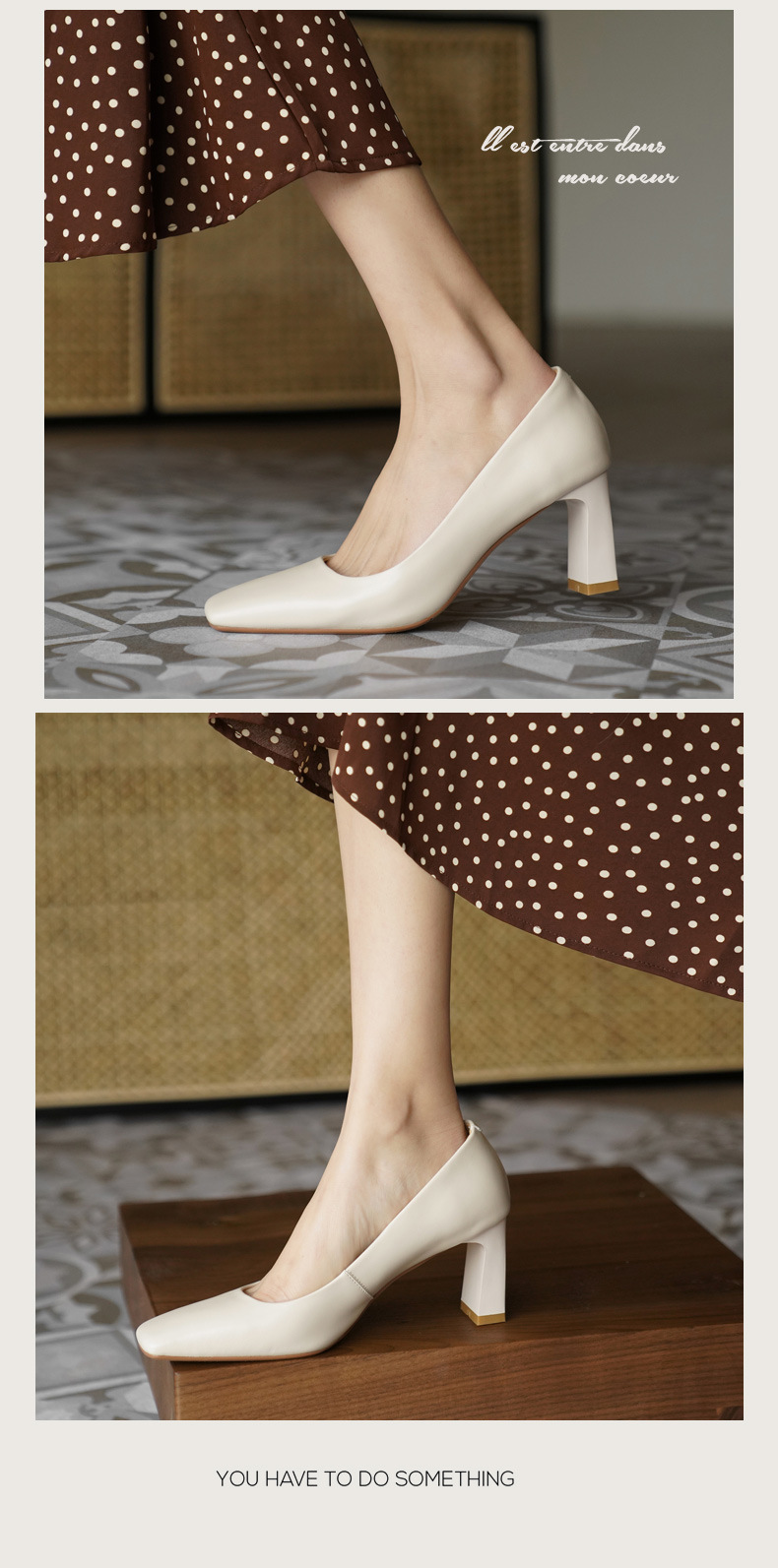 X-32069# 高跟鞋女新款浅口方头法式复古百搭春款粗跟单鞋女 鞋子批發女鞋批發鞋子靴子貨源