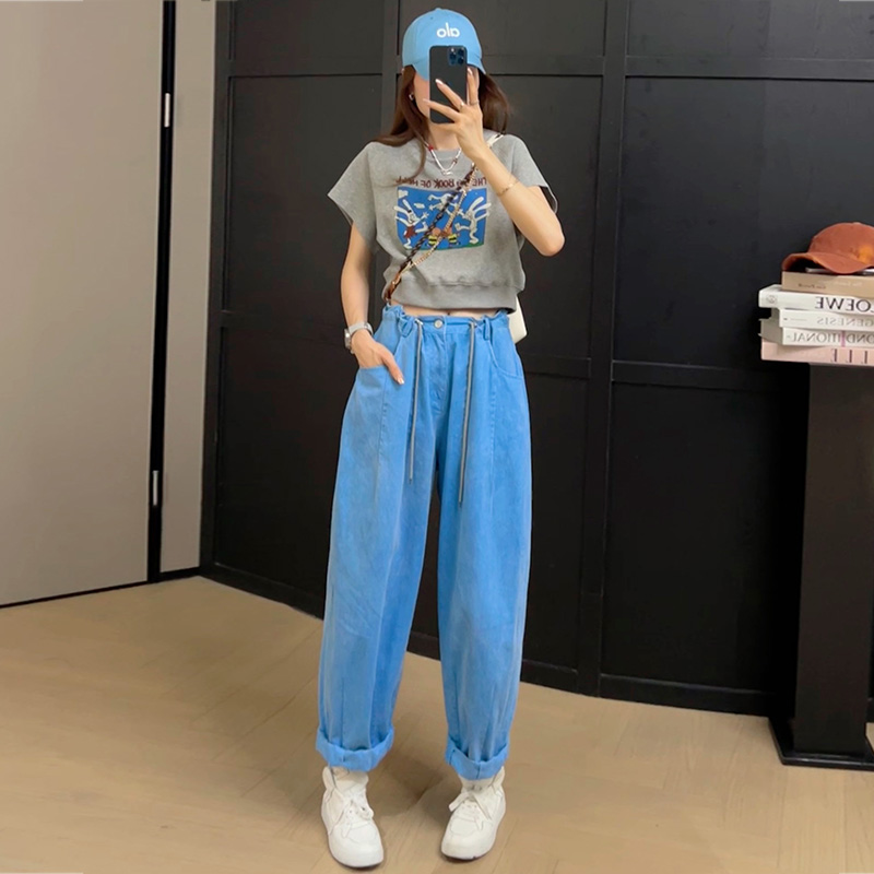 FA19364# 夏季圆领印花蝙蝠袖T恤短袖百搭松弛感抽绳哈伦裤两件套