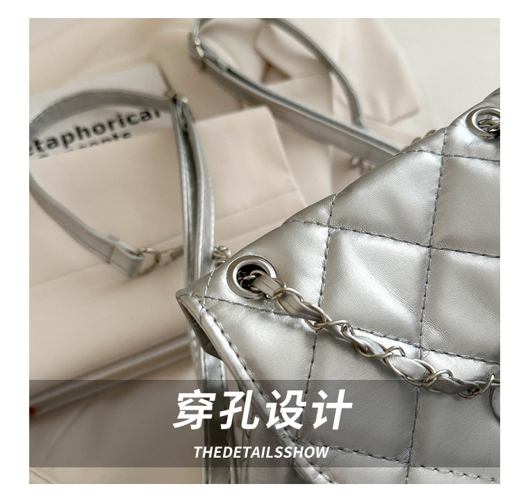TJ1077# 菱格双肩包女时尚2024夏季新款高颜值小众设计链条包小型女士背包