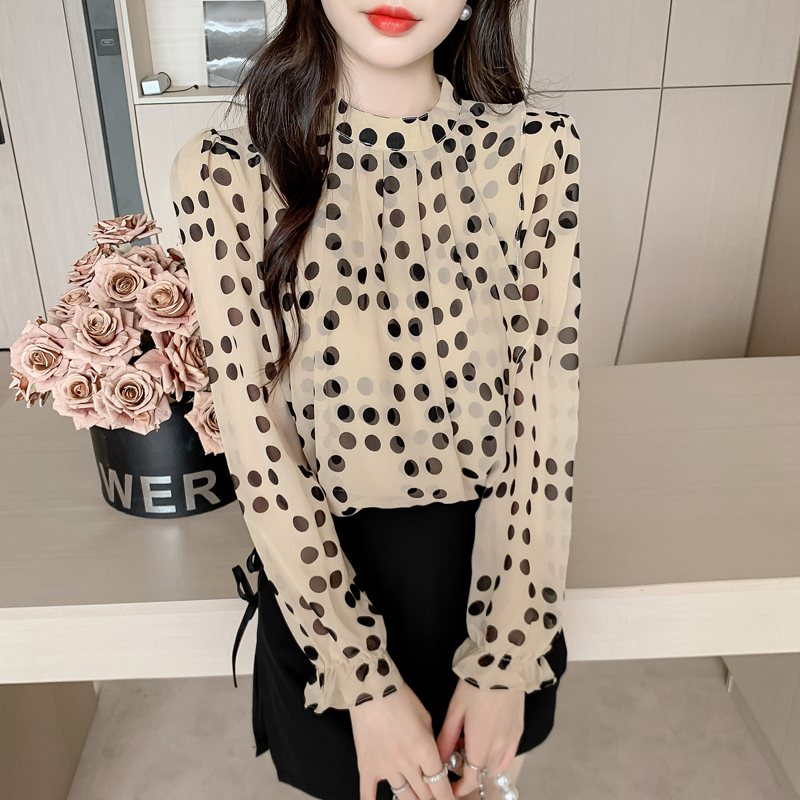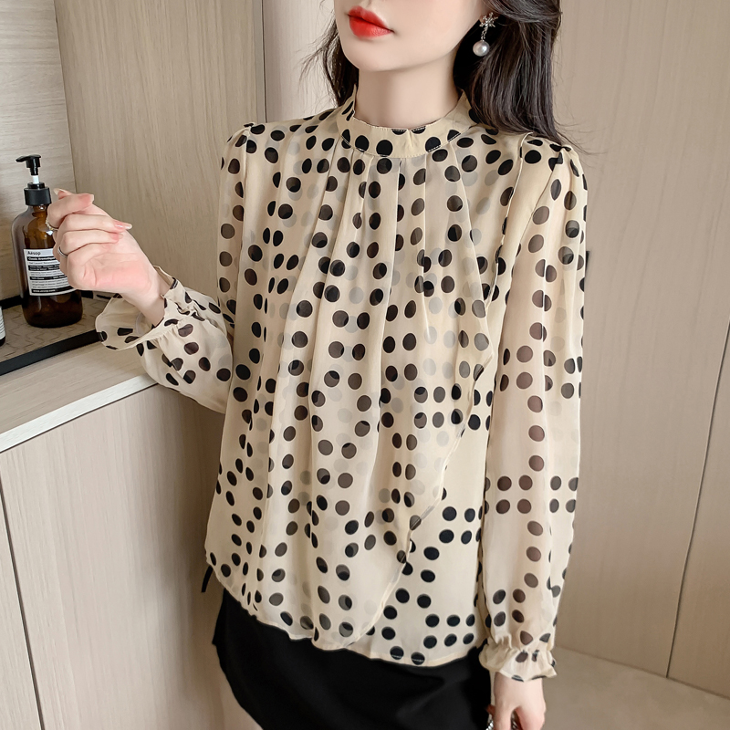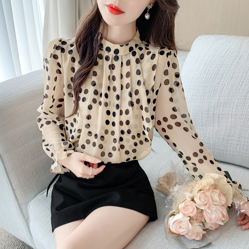 FA41214# 秋款优雅气质雪纺衫时尚气质通勤复古波点 服裝批發女裝批發服飾貨源