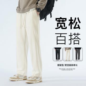 FA42310# 重磅华棉包边款直筒运动裤男新款春秋潮牌宽松舒适休闲裤男生腿阔腿棉质拖地卫裤潮流长裤 男装批发