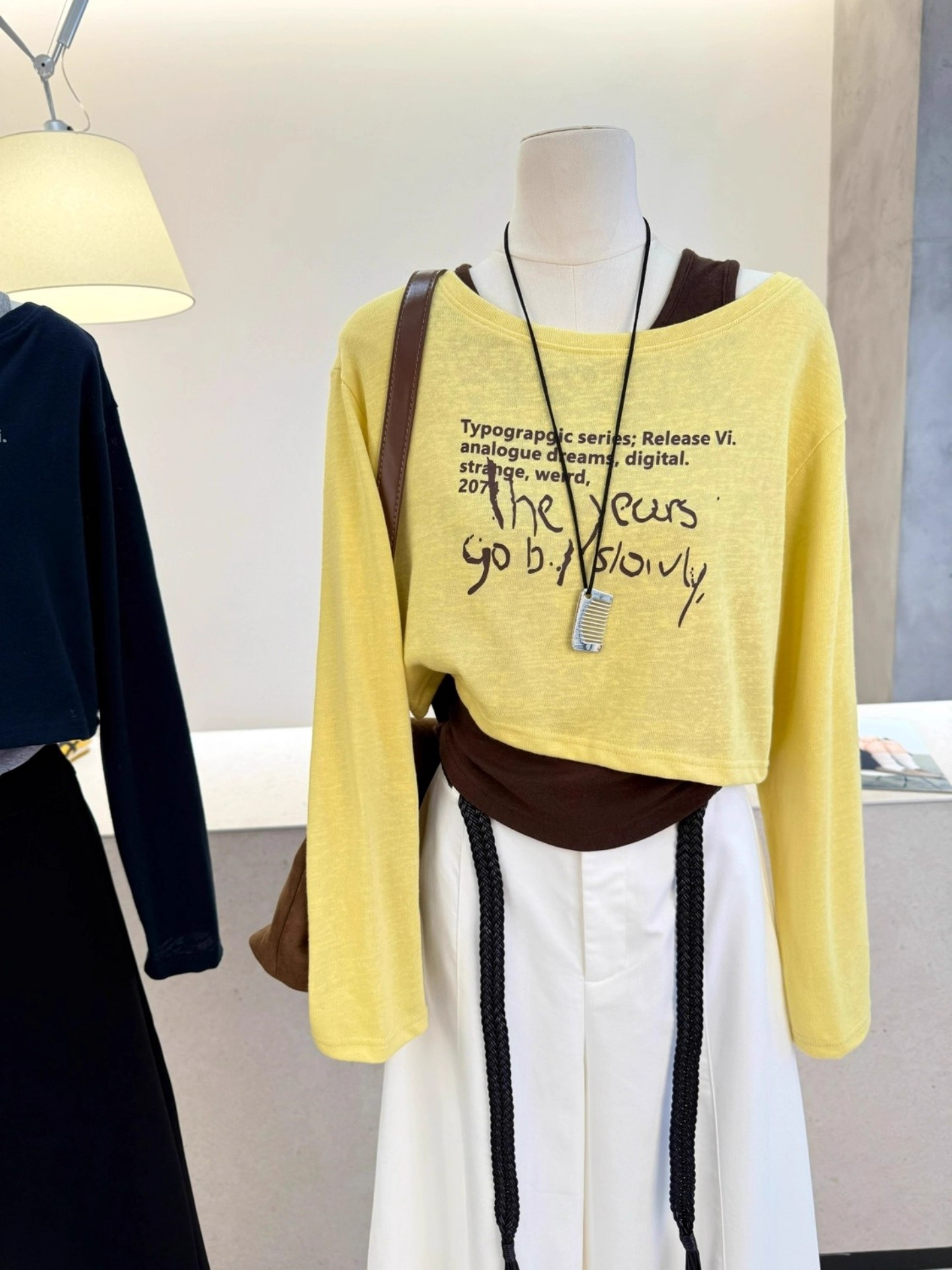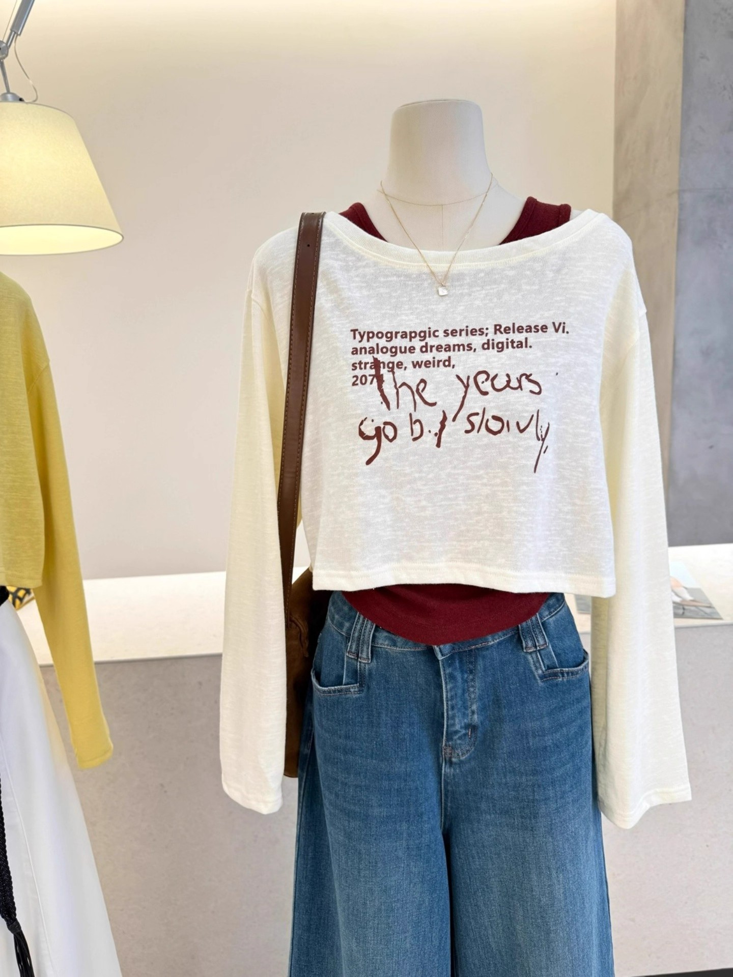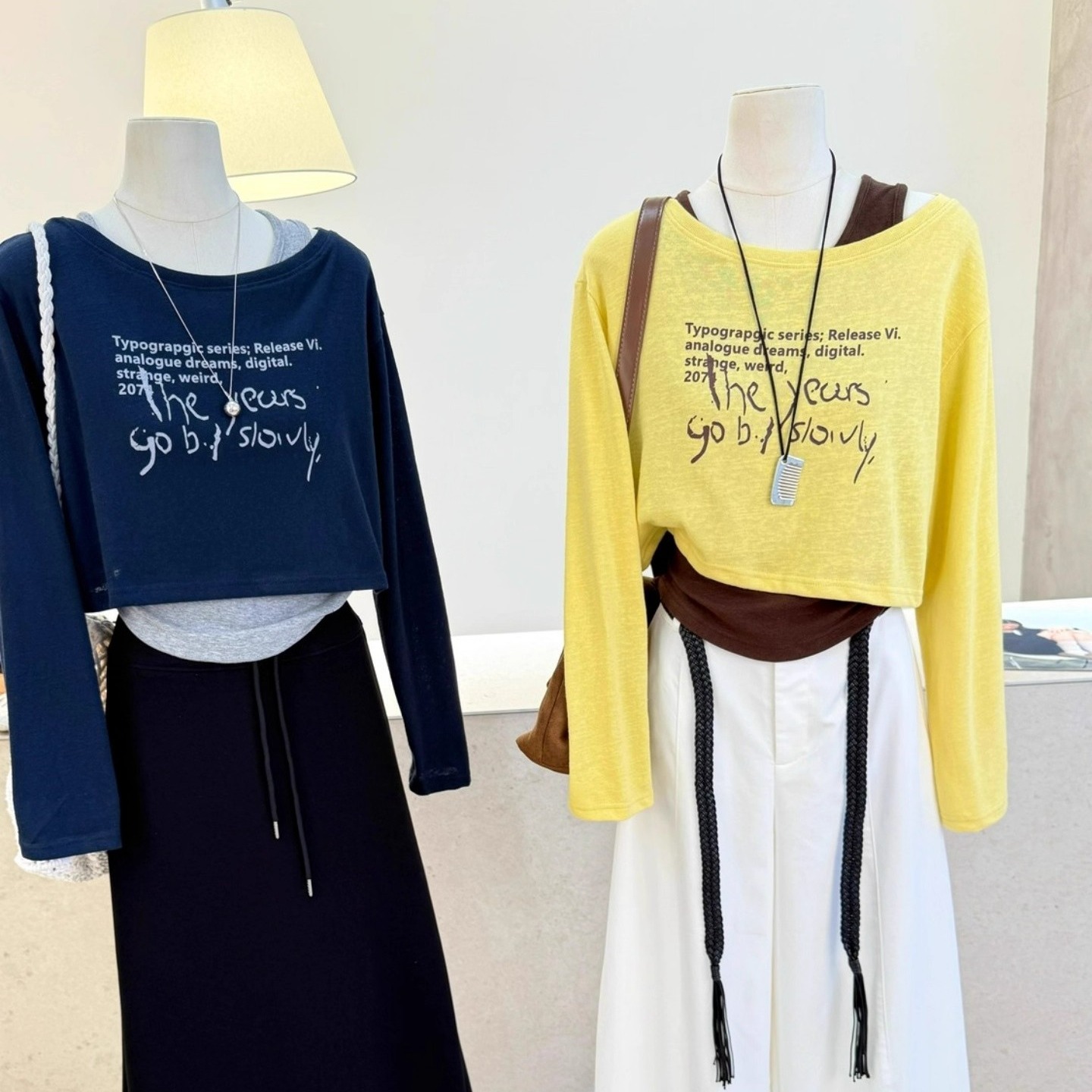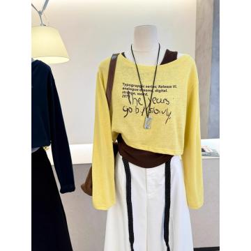 FA42810# 原版质量早秋新款韩版露肩长袖T恤背心两件套短款上衣套装女 服裝批發女裝批發服飾貨源