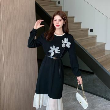 FA42961# 秋冬新品甜美艺术简约花朵针织裙韩版圆领套头宽松鱼尾连衣裙 服裝批發女裝批發服飾貨源