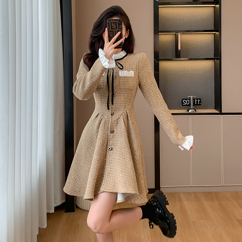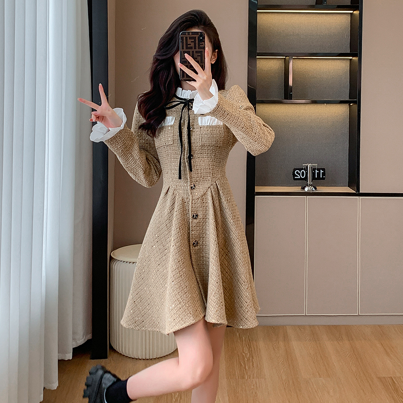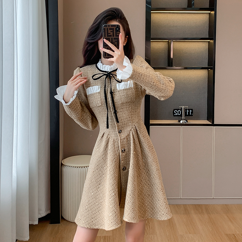 FA43030# 韩版千金公主小香风连衣裙女秋冬新款高级感收腰气质A字短裙 服裝批發女裝批發服飾貨源